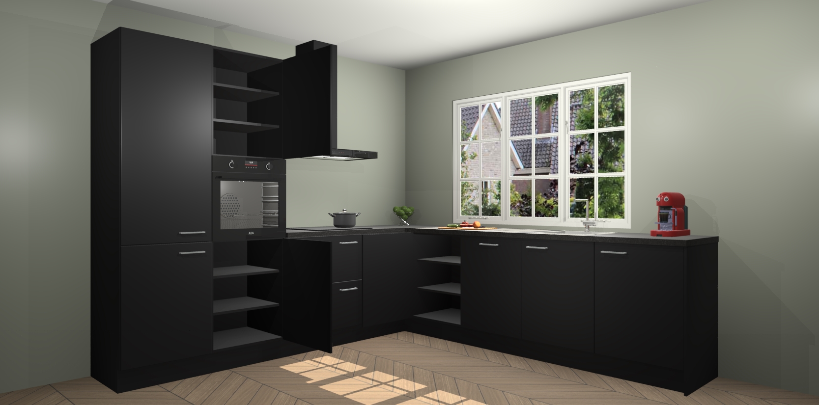 Welkom in de nieuwe wereld van een moderne keuken: de Zwarte keuken Casablanca! Met dit innovatieve keukendesign haalt u de natuur naar binnen. Neem plaats aan uw hout-look keuken en voel u verbonden met de prachtige Zwarte kleur. Zeer gebruiksvriendelijk, ervaring door prettige materialen en kleur die perfect aansluiten bij uw sfeerkeuze in huis.