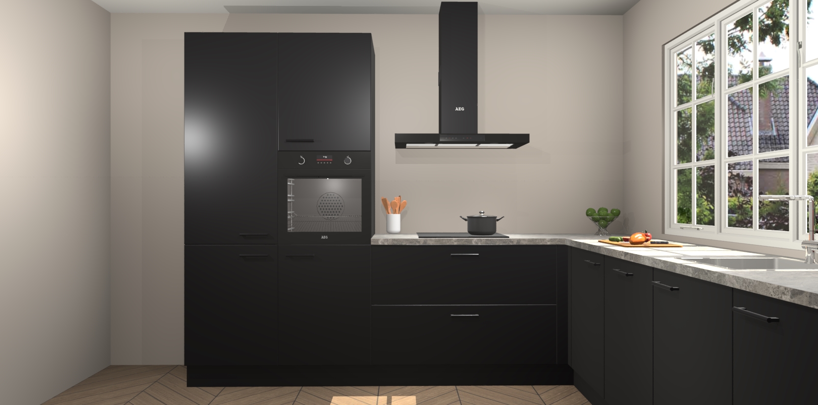 De keuken heeft veel opbergruimte, waardoor u alle ingrediënten gemakkelijk bereikbaar hebt staan. En daarnaast bevat deze volledig uitgeruste keuken ook 5 ingebouwde apparaten: een oven, inductiekookplaat, afzuigkap, vaatwasser en koelkast. Deze zijn heel eenvoudig na bestellen te upgraden naar AEG als u dit wilt. Bovendien zijn de softclose-kastdeuren ideaal; geef ze gewoon even een tikje en ze sluiten automatisch met geruisloze precisie.