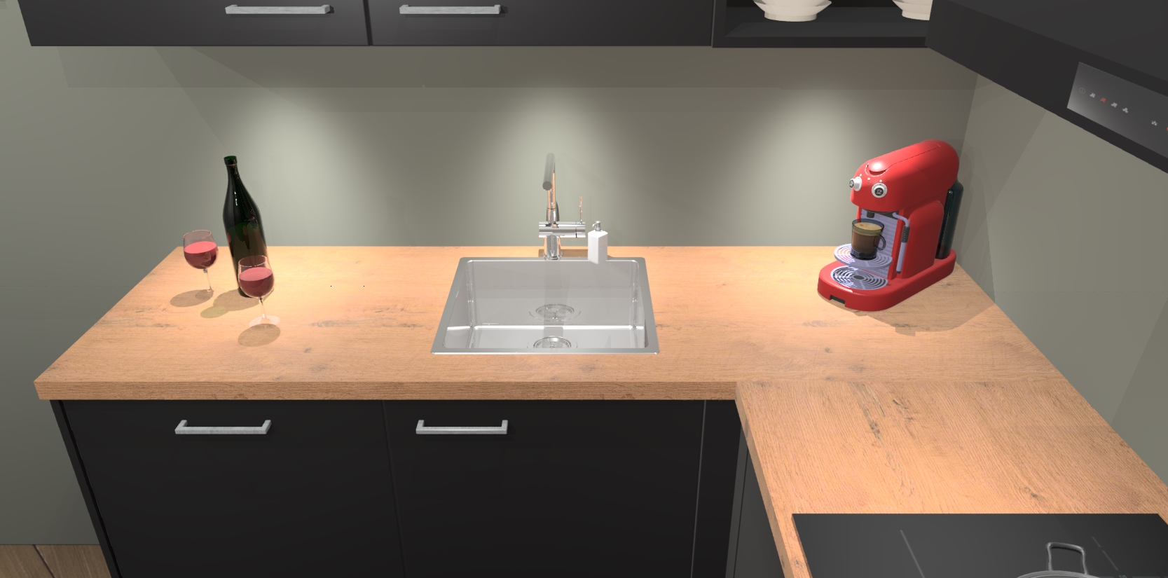 - Bij een hoekwerkblad zijn de hoeken in gevreesd en op maat gemaakt