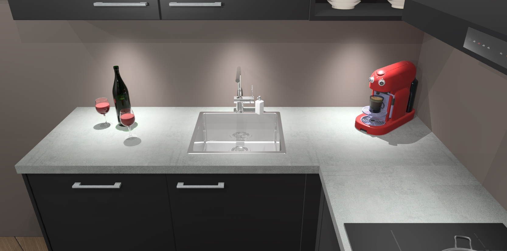 - Bij een hoekwerkblad zijn de hoeken in gevreesd en op maat gemaakt