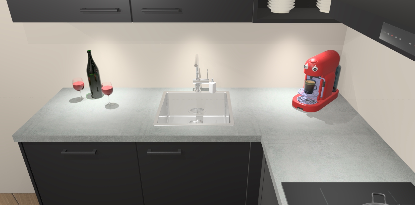 - Bij een hoekwerkblad zijn de hoeken in gevreesd en op maat gemaakt
