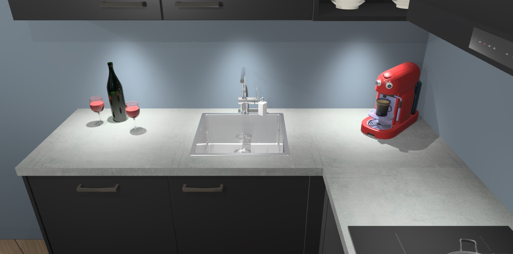 - Bij een hoekwerkblad zijn de hoeken in gevreesd en op maat gemaakt