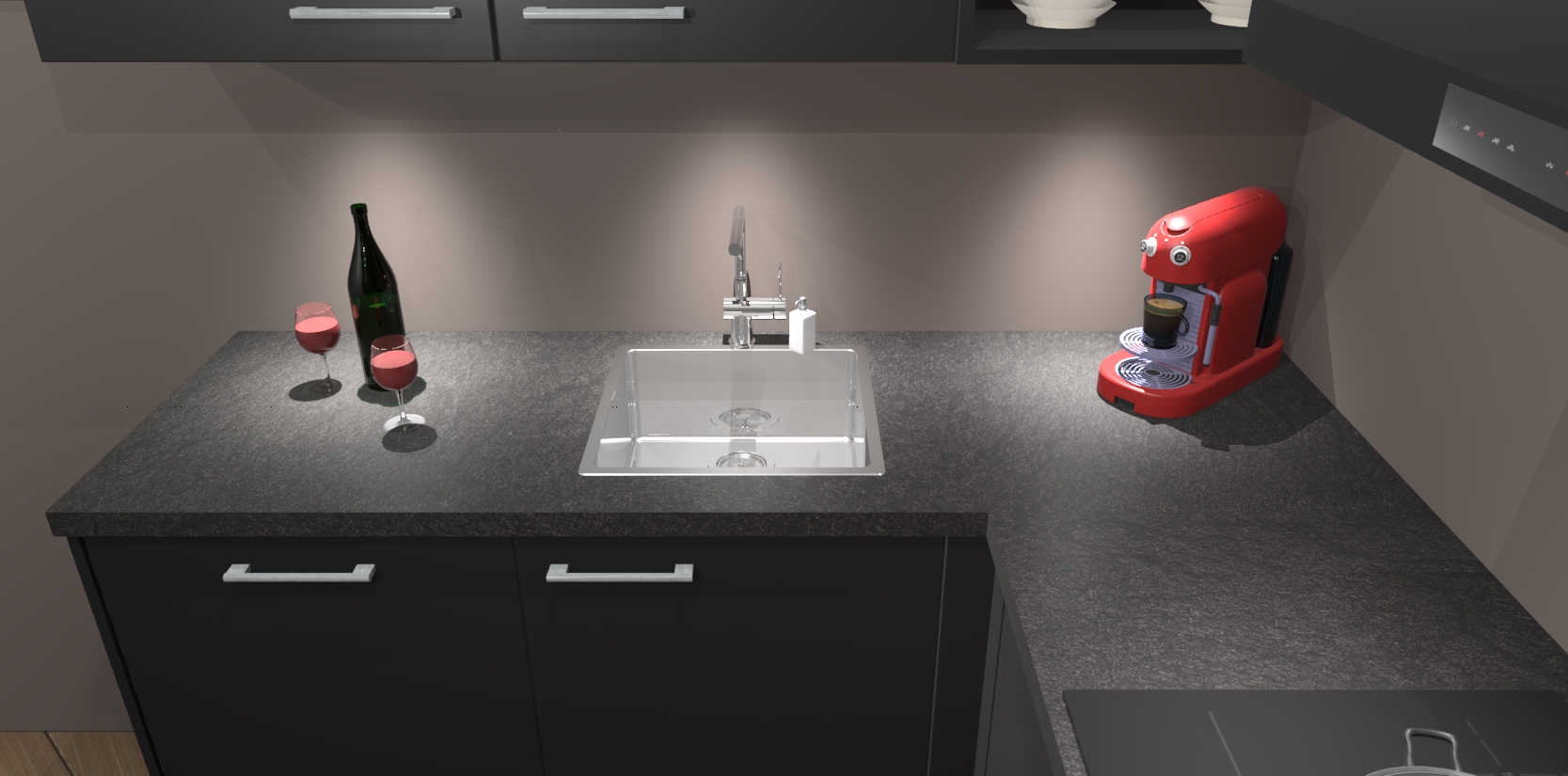 - Bij een hoekwerkblad zijn de hoeken in gevreesd en op maat gemaakt