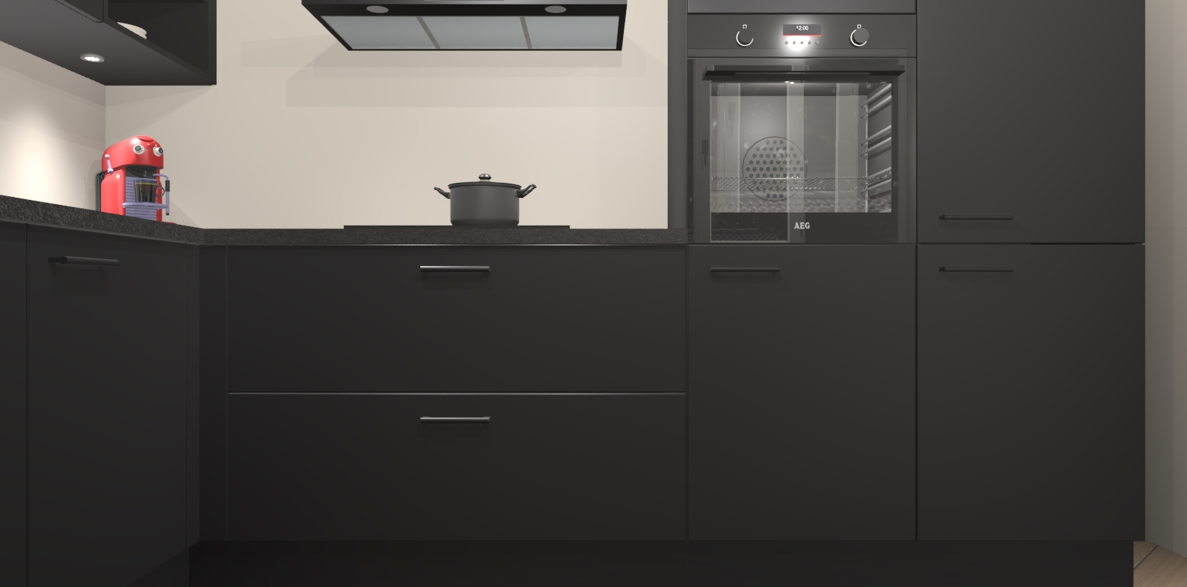 Inclusief plinten, stelpoten en werkblad