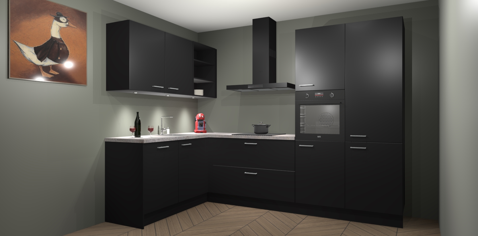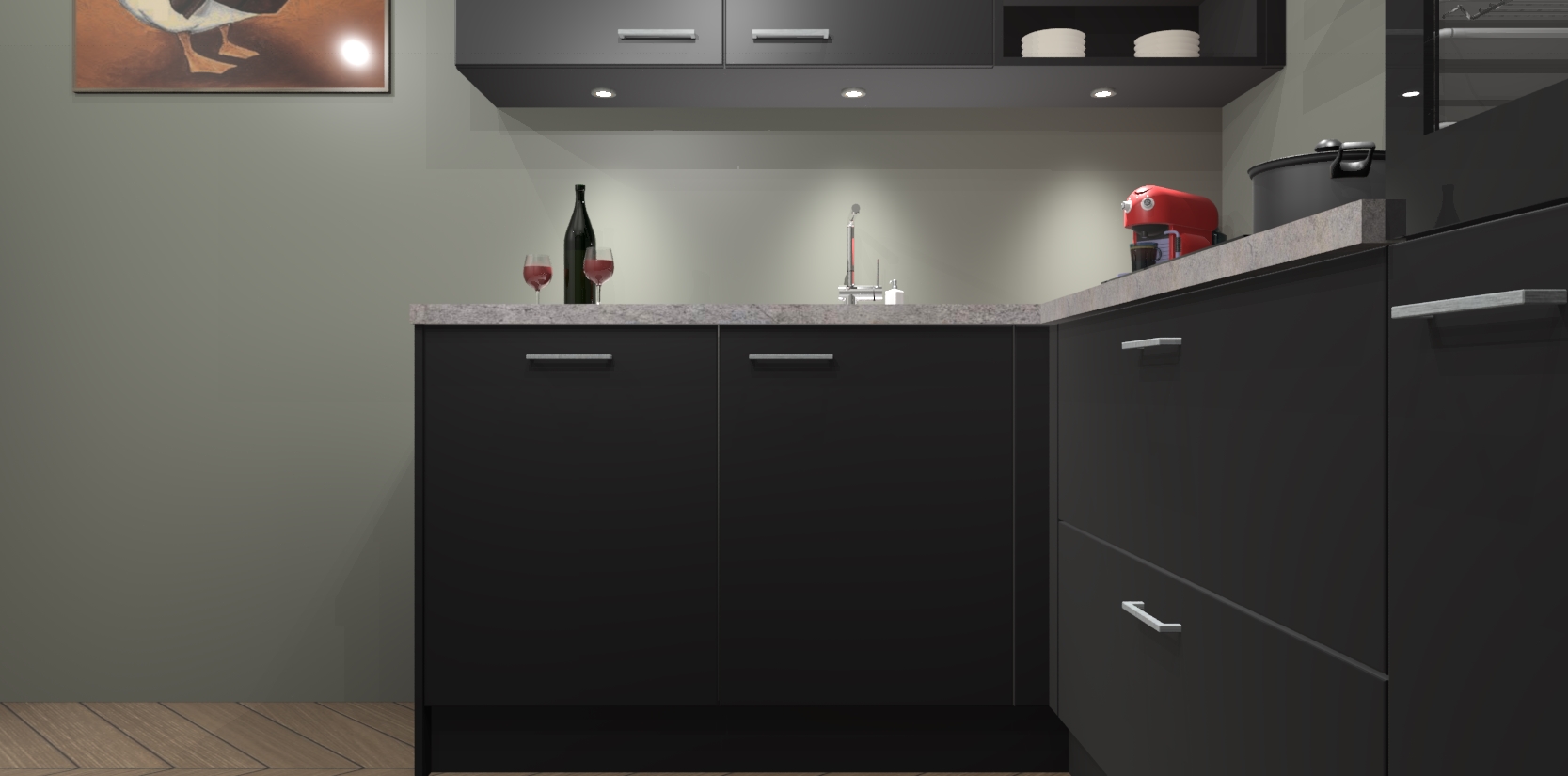 De Zwarte keuken Cognac gaat alleen maar om de beste keukenervaring. Kies gewoon de beste apparatuur en ongeëvenaarde Duitse constructie die u thuis wilt hebben en verander uw huiskamer hartelijkheid meteen in professionaliteit. Laat de toon weten dat u gemakkelijk kan genieten van alle luxe die u verdiend? Bestel nu de Zwarte keuken Cognac voor bij u thuis!