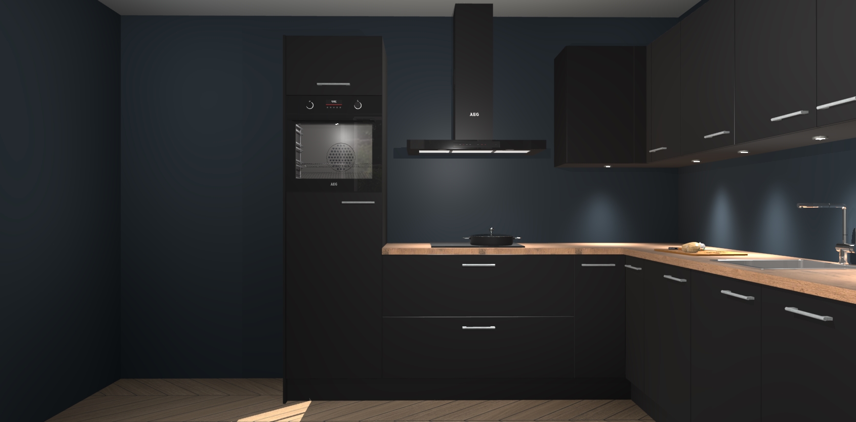De Zwarte keuken Debar is uitgerust met vijf inbouwapparaten die elke kooktaak handig en efficiënt maken. Een oven, inductiekookplaat, afzuigkap, vaatwasser en koelkast zijn standaard, maar kunnen na bestelling eenvoudig worden geupgrade naar AEG. Profiteer vervolgens van de softclose deuren voor snelle toegang en geruisloze toegang.