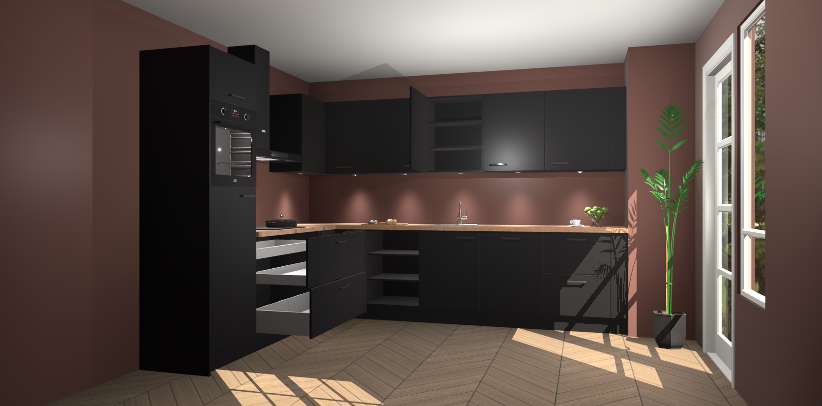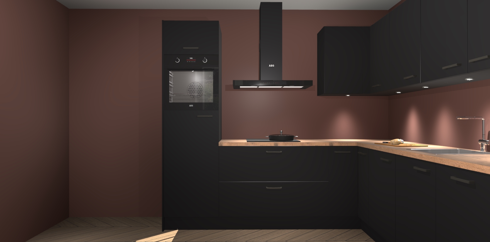 De Zwarte keuken Debar is uitgerust met vijf inbouwapparaten die elke kooktaak handig en efficiënt maken. Een oven, inductiekookplaat, afzuigkap, vaatwasser en koelkast zijn standaard, maar kunnen na bestelling eenvoudig worden geupgrade naar AEG. Profiteer vervolgens van de softclose deuren voor snelle toegang en geruisloze toegang.