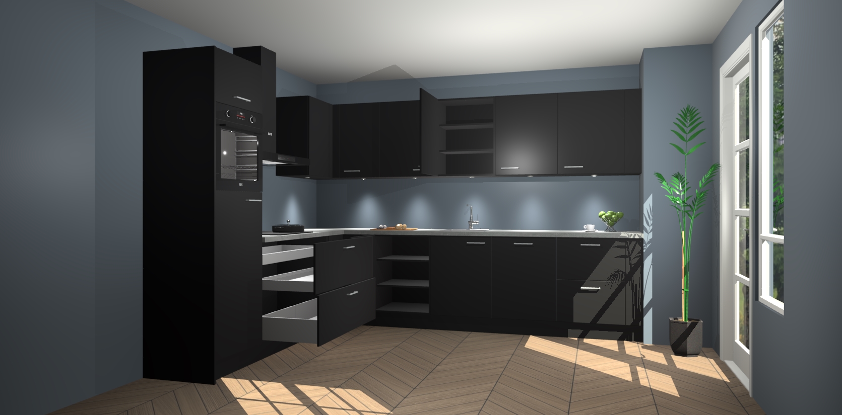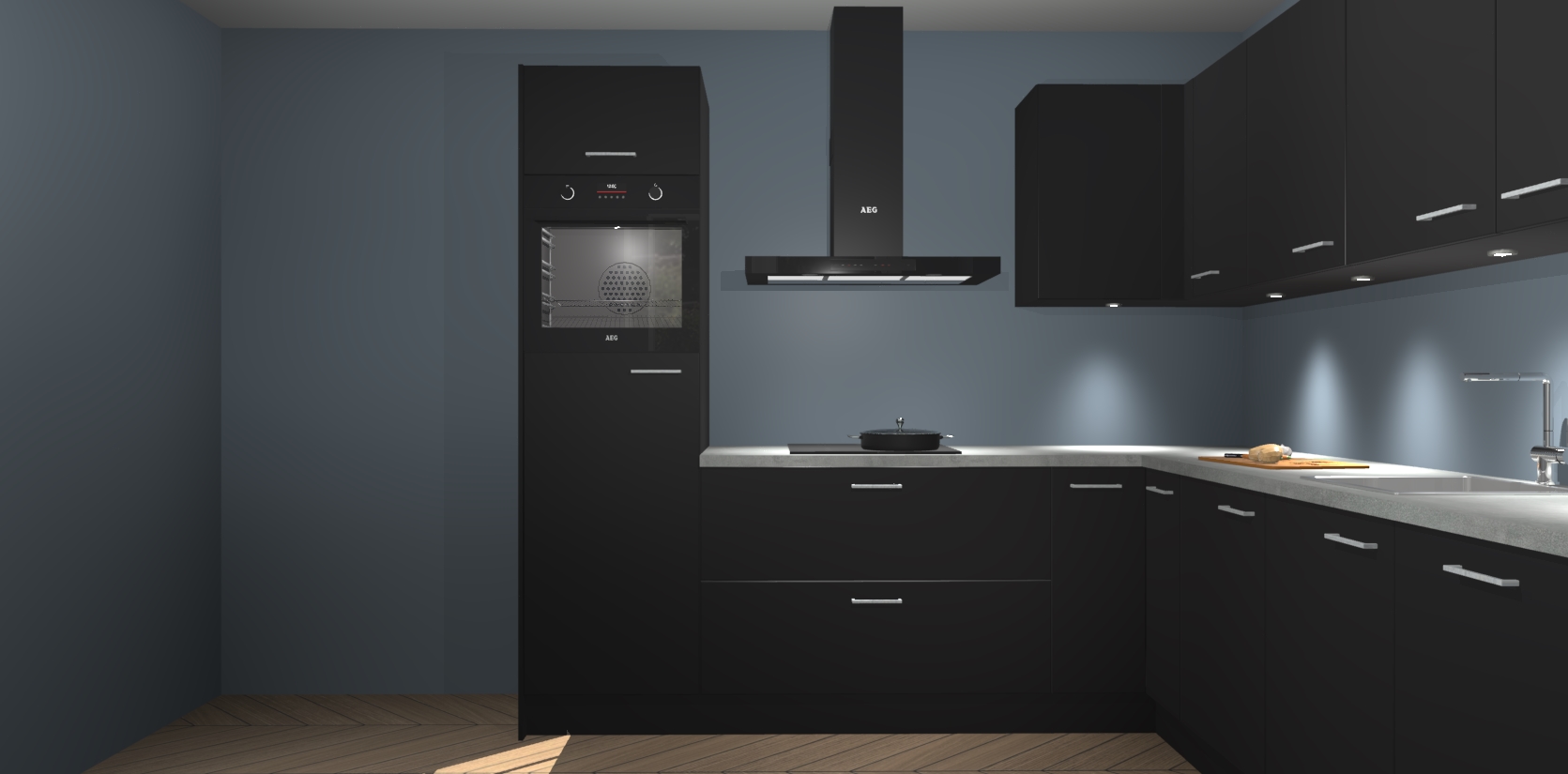 De Zwarte keuken Debar is uitgerust met vijf inbouwapparaten die elke kooktaak handig en efficiënt maken. Een oven, inductiekookplaat, afzuigkap, vaatwasser en koelkast zijn standaard, maar kunnen na bestelling eenvoudig worden geupgrade naar AEG. Profiteer vervolgens van de softclose deuren voor snelle toegang en geruisloze toegang.