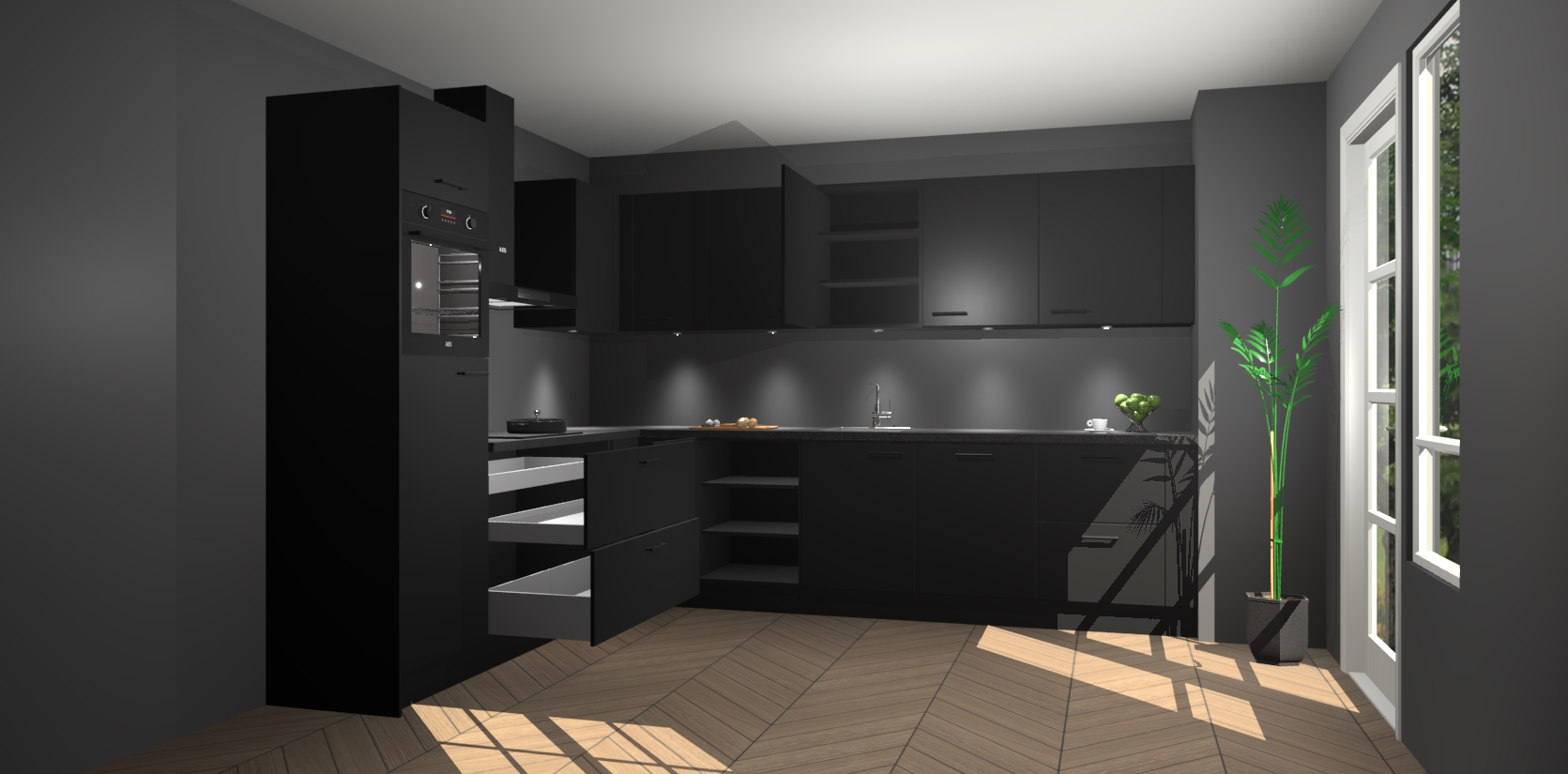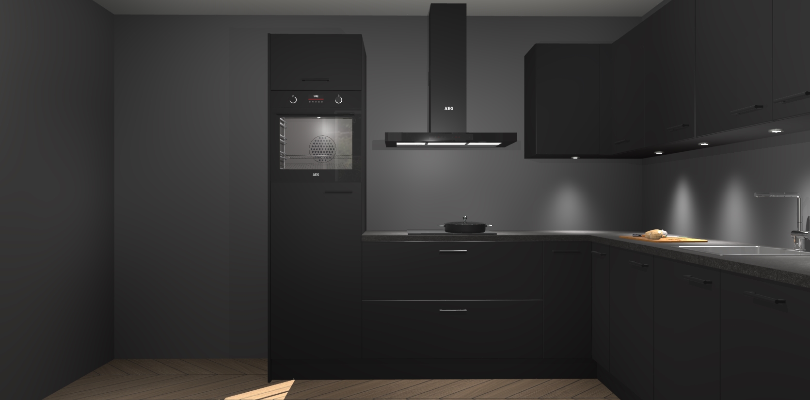 De Zwarte keuken Debar is uitgerust met vijf inbouwapparaten die elke kooktaak handig en efficiënt maken. Een oven, inductiekookplaat, afzuigkap, vaatwasser en koelkast zijn standaard, maar kunnen na bestelling eenvoudig worden geupgrade naar AEG. Profiteer vervolgens van de softclose deuren voor snelle toegang en geruisloze toegang.