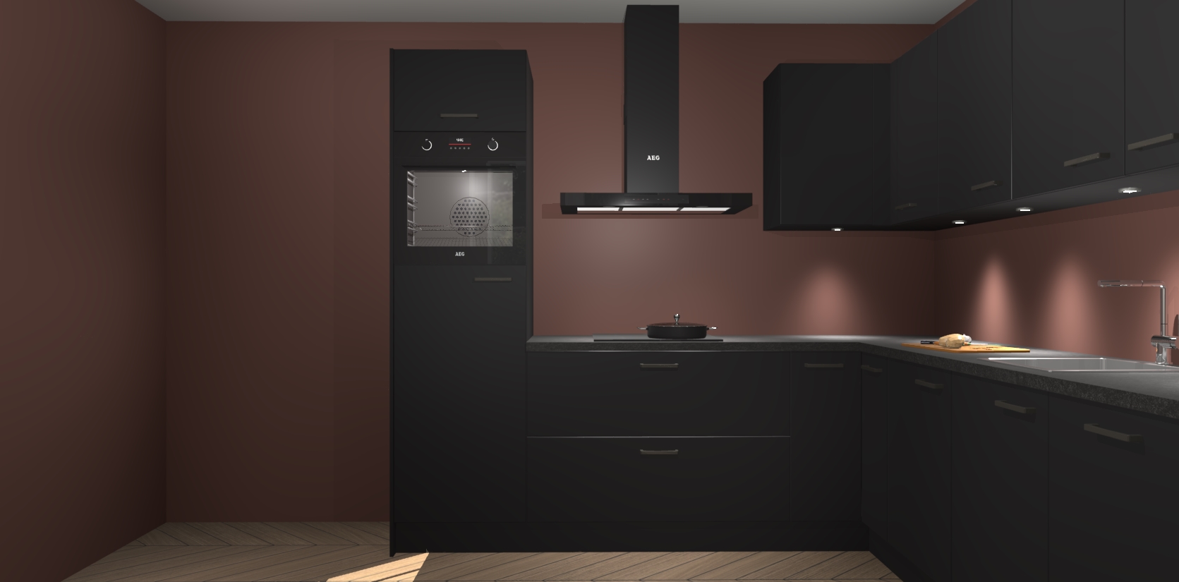 De Zwarte keuken Debar is uitgerust met vijf inbouwapparaten die elke kooktaak handig en efficiënt maken. Een oven, inductiekookplaat, afzuigkap, vaatwasser en koelkast zijn standaard, maar kunnen na bestelling eenvoudig worden geupgrade naar AEG. Profiteer vervolgens van de softclose deuren voor snelle toegang en geruisloze toegang.