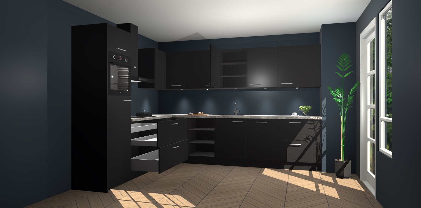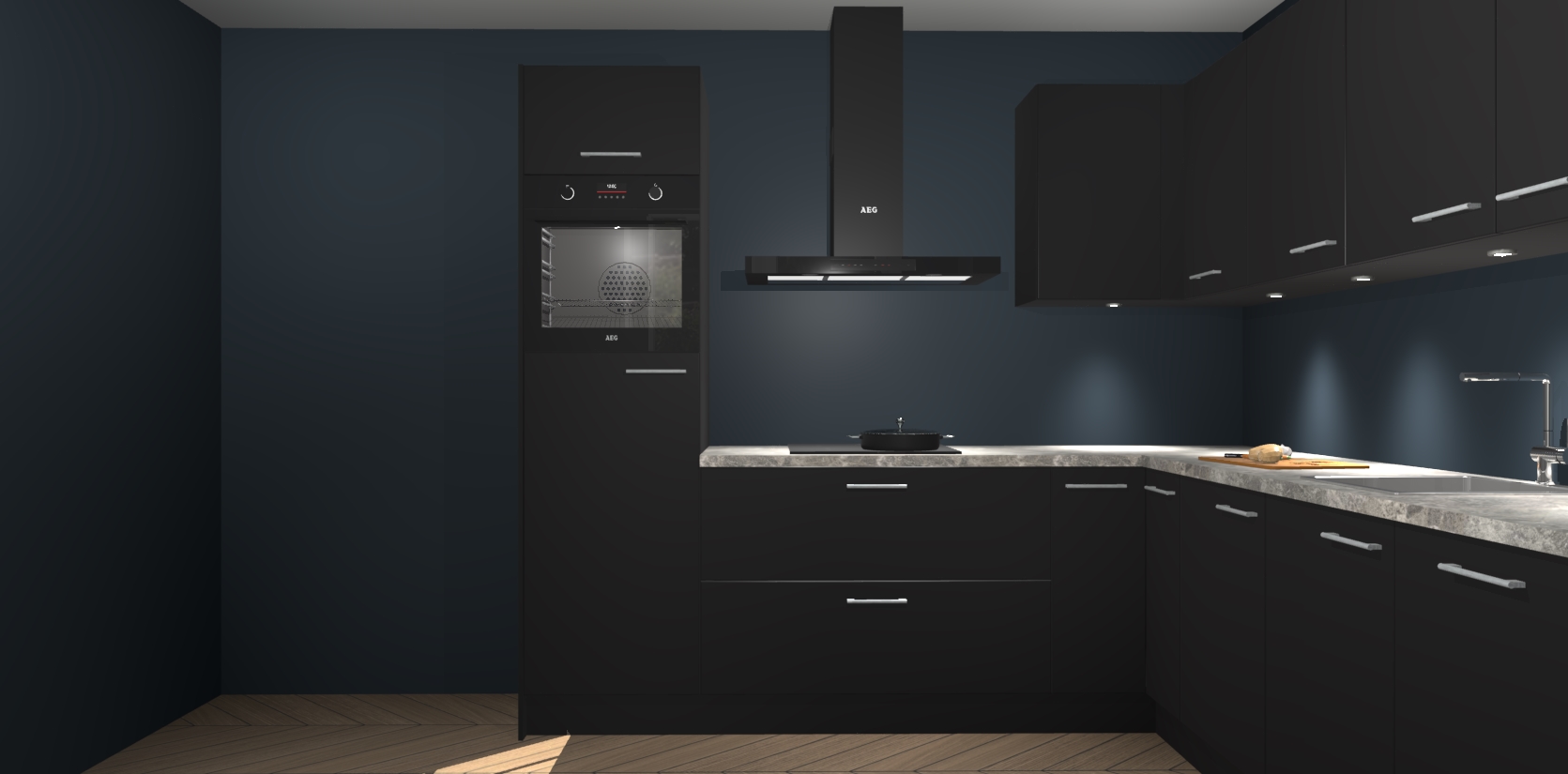 De Zwarte keuken Debar is uitgerust met vijf inbouwapparaten die elke kooktaak handig en efficiënt maken. Een oven, inductiekookplaat, afzuigkap, vaatwasser en koelkast zijn standaard, maar kunnen na bestelling eenvoudig worden geupgrade naar AEG. Profiteer vervolgens van de softclose deuren voor snelle toegang en geruisloze toegang.