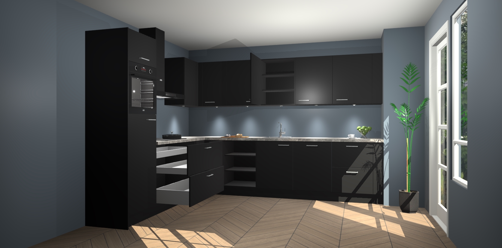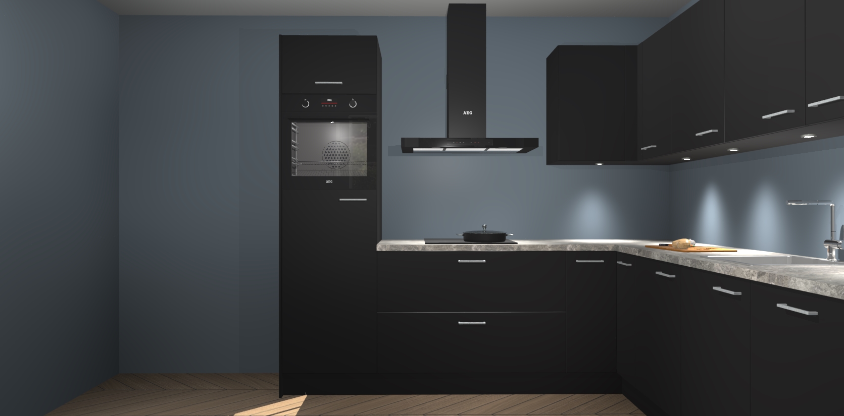 De Zwarte keuken Debar is uitgerust met vijf inbouwapparaten die elke kooktaak handig en efficiënt maken. Een oven, inductiekookplaat, afzuigkap, vaatwasser en koelkast zijn standaard, maar kunnen na bestelling eenvoudig worden geupgrade naar AEG. Profiteer vervolgens van de softclose deuren voor snelle toegang en geruisloze toegang.
