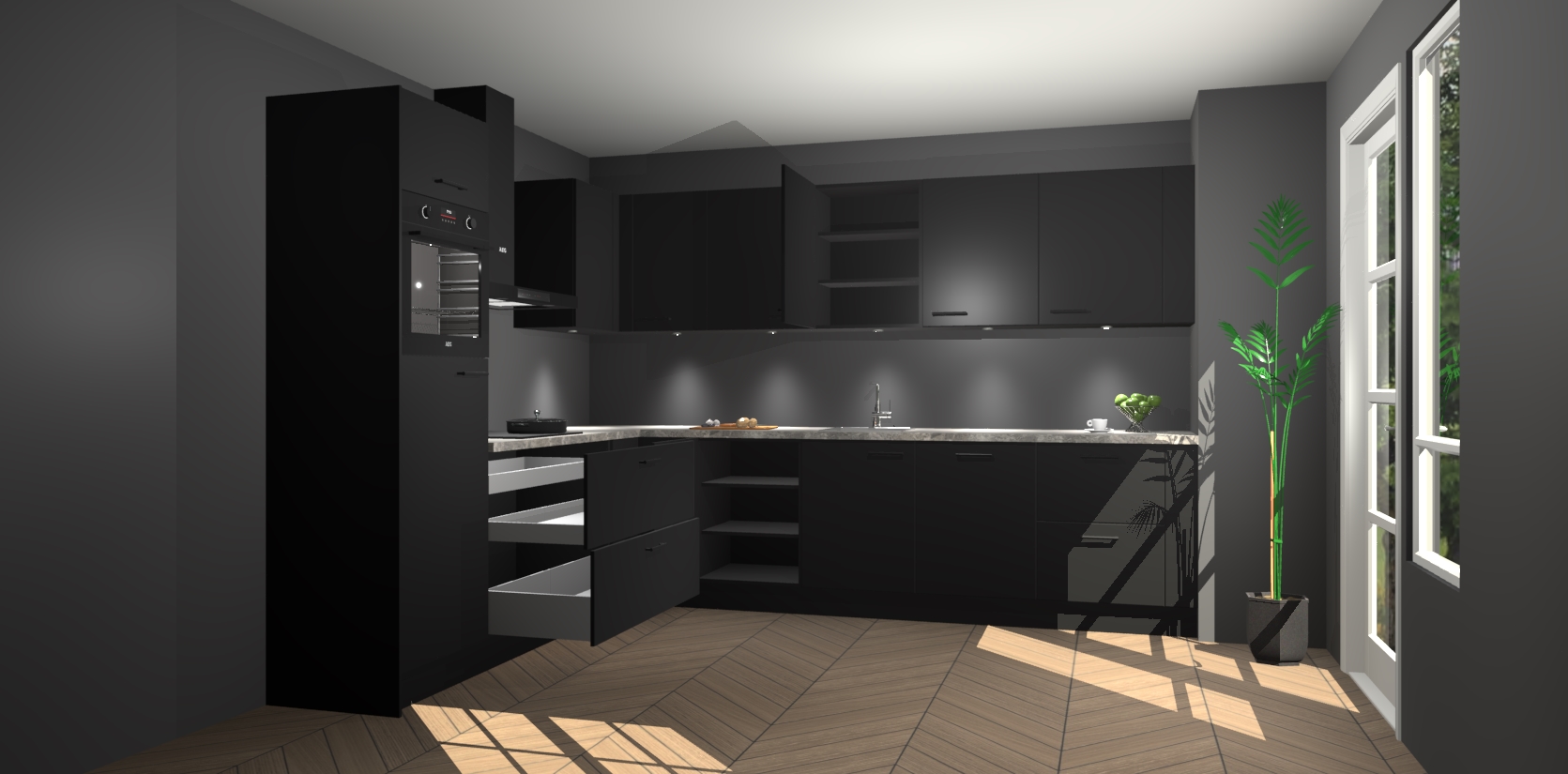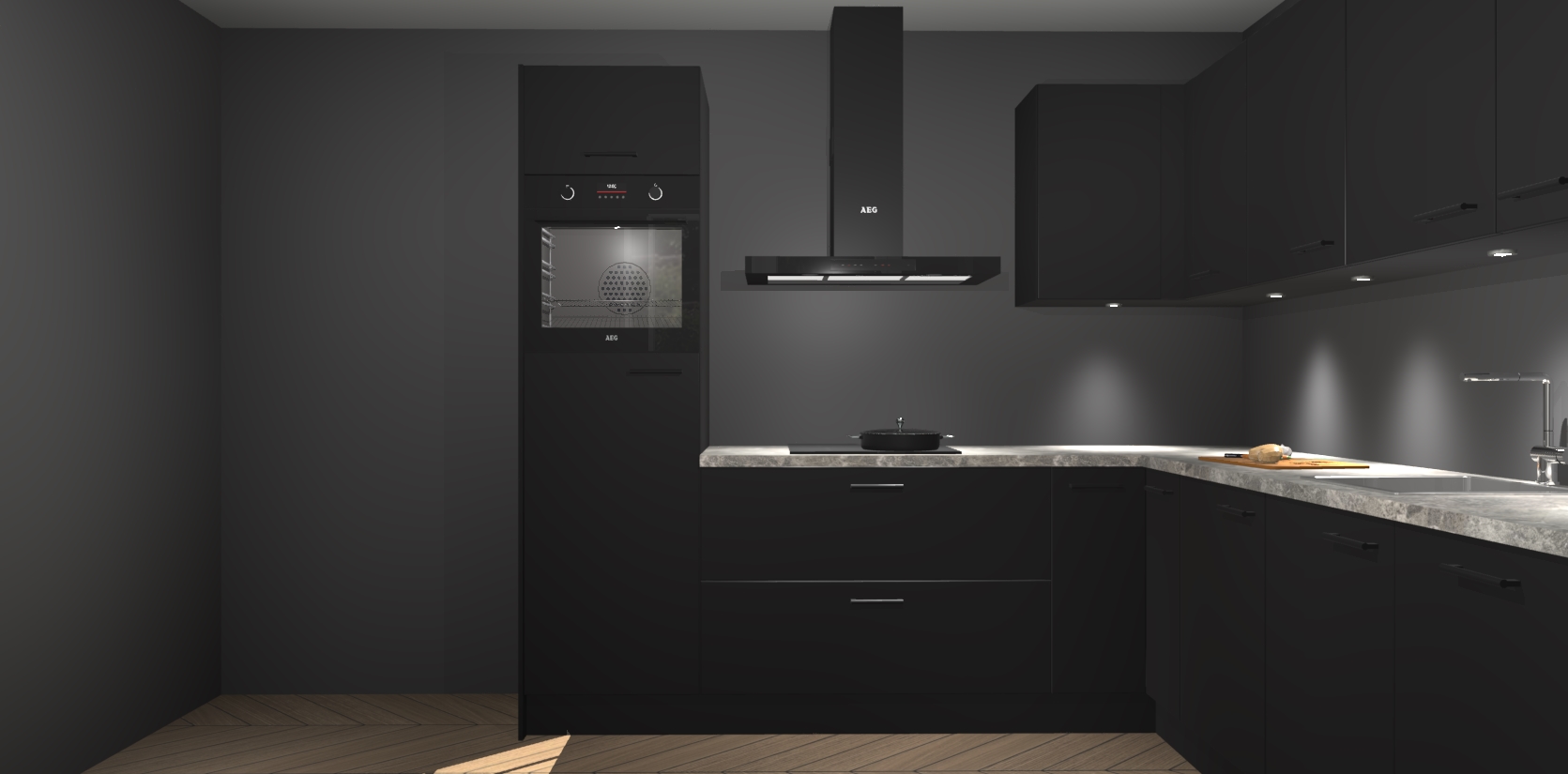 De Zwarte keuken Debar is uitgerust met vijf inbouwapparaten die elke kooktaak handig en efficiënt maken. Een oven, inductiekookplaat, afzuigkap, vaatwasser en koelkast zijn standaard, maar kunnen na bestelling eenvoudig worden geupgrade naar AEG. Profiteer vervolgens van de softclose deuren voor snelle toegang en geruisloze toegang.