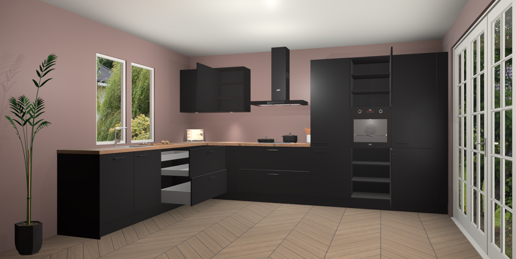 Kom dichtbij de perfecte keuken van uw dromen met de Zwarte keuken Debrecen. Met een prachtige houtlook en eigentijds ontwerp, straalt deze keuken warmte en sfeer uit. Of u nu liefhebber bent van traditionele of moderne stijlen, er is genoeg ruimte om aan al uw behoeften te voldoen.