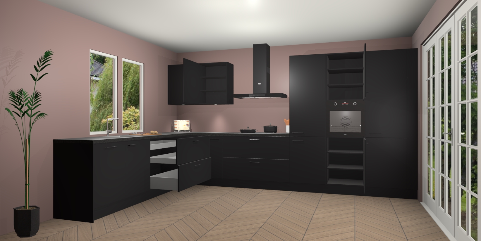 Inclusief plinten, stelpoten en werkblad