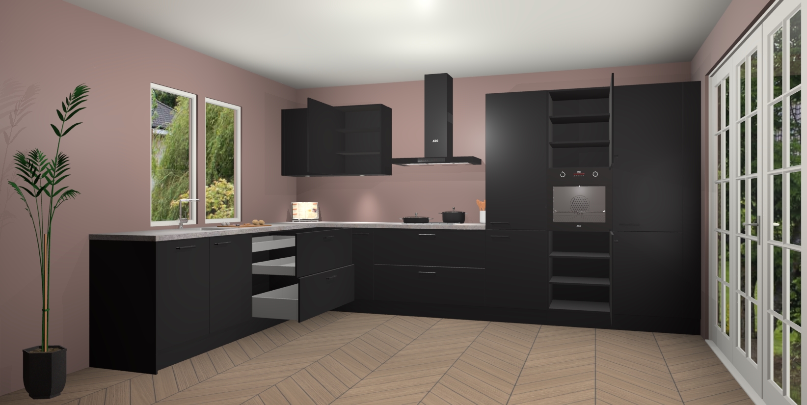 Kom dichtbij de perfecte keuken van uw dromen met de Zwarte keuken Debrecen. Met een prachtige houtlook en eigentijds ontwerp, straalt deze keuken warmte en sfeer uit. Of u nu liefhebber bent van traditionele of moderne stijlen, er is genoeg ruimte om aan al uw behoeften te voldoen.