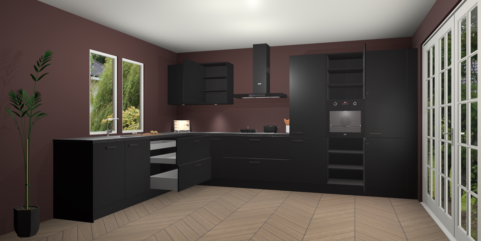 Kom dichtbij de perfecte keuken van uw dromen met de Zwarte keuken Debrecen. Met een prachtige houtlook en eigentijds ontwerp, straalt deze keuken warmte en sfeer uit. Of u nu liefhebber bent van traditionele of moderne stijlen, er is genoeg ruimte om aan al uw behoeften te voldoen.