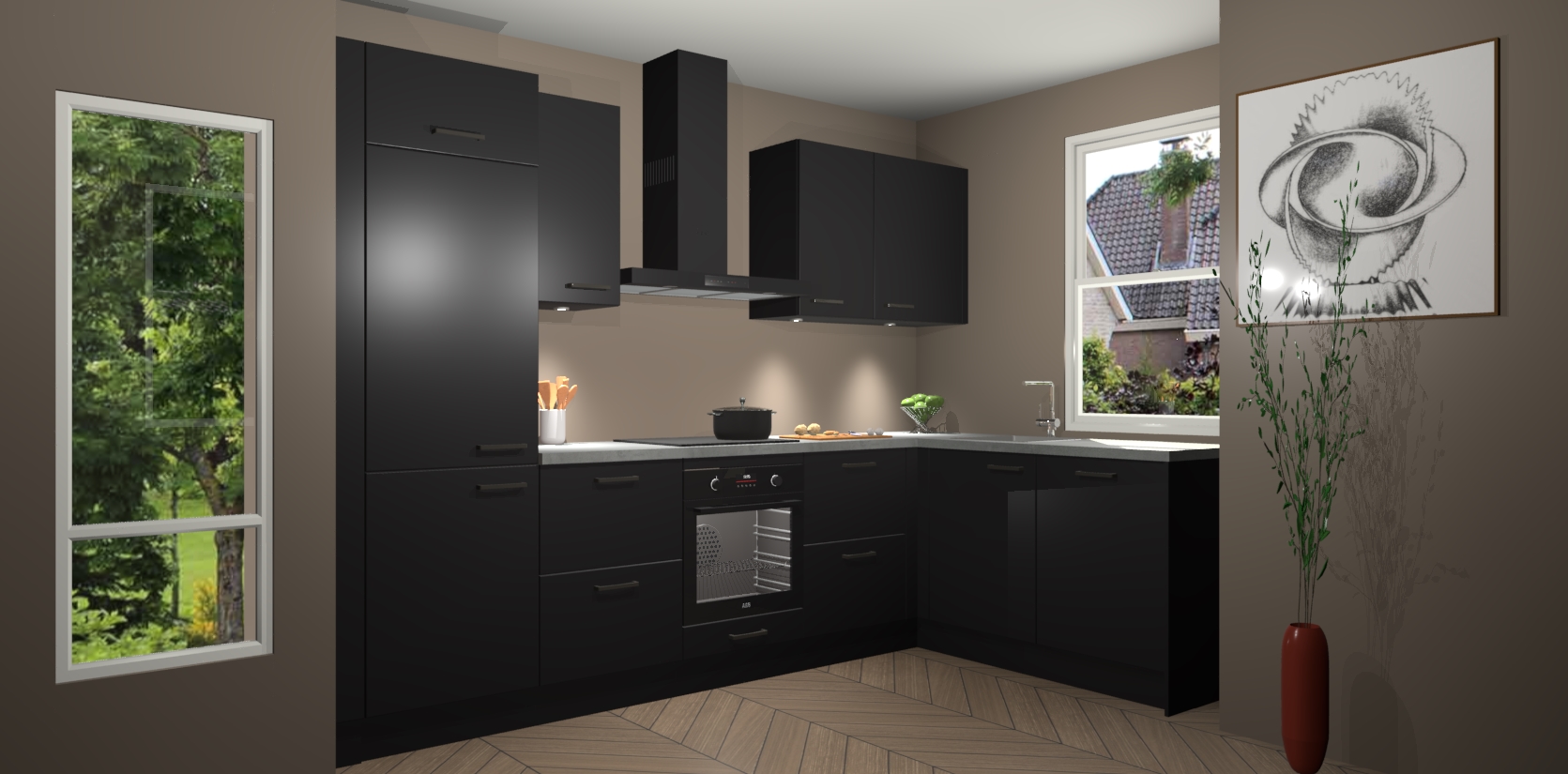 De Zwarte keuken Geneve is precies wat u nodig heeft als u op zoek bent naar modern design, versmolten met tijdloze schoonheid. De strakke afwerking voegt klasse toe terwijl het toch een uitnodigende sfeer behoudt; zeker om zowel gasten als uzelf te inspireren om in stijl te gaan koken! En nog beter, het zal uw budget niet breken - dus waarom wachten? Met de Zwarte keuken Geneve bent u verzekerd van kwaliteit zonder in te leveren op de prijs!