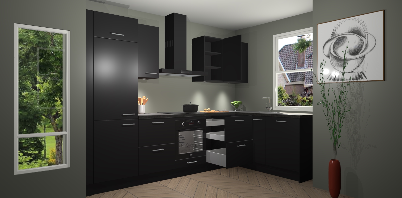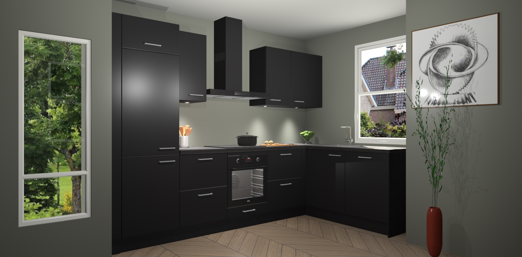 De Zwarte keuken Geneve is precies wat u nodig heeft als u op zoek bent naar modern design, versmolten met tijdloze schoonheid. De strakke afwerking voegt klasse toe terwijl het toch een uitnodigende sfeer behoudt; zeker om zowel gasten als uzelf te inspireren om in stijl te gaan koken! En nog beter, het zal uw budget niet breken - dus waarom wachten? Met de Zwarte keuken Geneve bent u verzekerd van kwaliteit zonder in te leveren op de prijs!