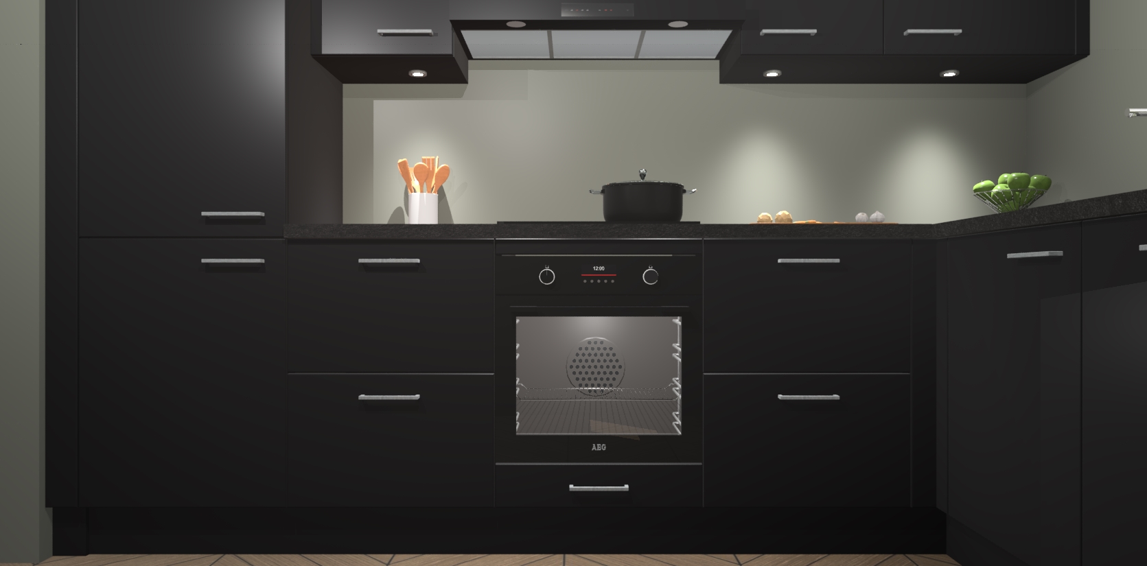 De Zwarte keuken Geneve is uitgerust met 5 inbouwapparaten - een oven, inductiekookplaat, afzuigkap, vaatwasser en koelkast - voor al uw kook- en bewaarbehoeftes. U kunt deze apparaten desgewenst eenvoudig upgraden naar AEG of de oven omruilen voor een combimagnetron na het plaatsen van uw bestelling. En met de soft close deuren, voldoende opbergruimte en kasten die voorgemonteerd worden geleverd, bent u in een mum van tijd klaar om heerlijke maaltijden te bereiden!