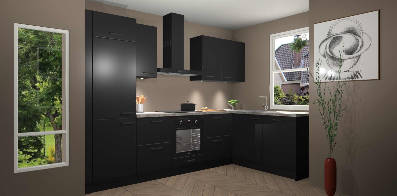 De Zwarte keuken Geneve is precies wat u nodig heeft als u op zoek bent naar modern design, versmolten met tijdloze schoonheid. De strakke afwerking voegt klasse toe terwijl het toch een uitnodigende sfeer behoudt; zeker om zowel gasten als uzelf te inspireren om in stijl te gaan koken! En nog beter, het zal uw budget niet breken - dus waarom wachten? Met de Zwarte keuken Geneve bent u verzekerd van kwaliteit zonder in te leveren op de prijs!