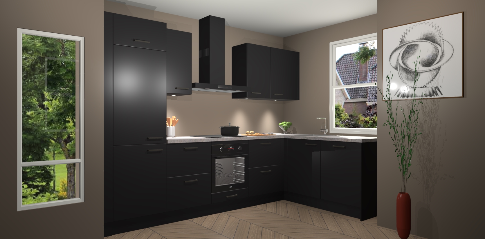 De Zwarte keuken Geneve is precies wat u nodig heeft als u op zoek bent naar modern design, versmolten met tijdloze schoonheid. De strakke afwerking voegt klasse toe terwijl het toch een uitnodigende sfeer behoudt; zeker om zowel gasten als uzelf te inspireren om in stijl te gaan koken! En nog beter, het zal uw budget niet breken - dus waarom wachten? Met de Zwarte keuken Geneve bent u verzekerd van kwaliteit zonder in te leveren op de prijs!