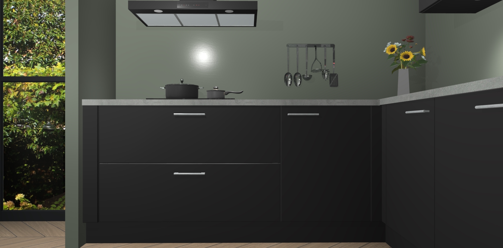 Dit is de perfecte keuken voor wie op zoek is naar een luxueuze stijl zonder zijn portemonnee te legen! Het chique ontwerp van Zwarte keuken Gotenburg voegt dat vleugje verfijning toe aan elk huis.