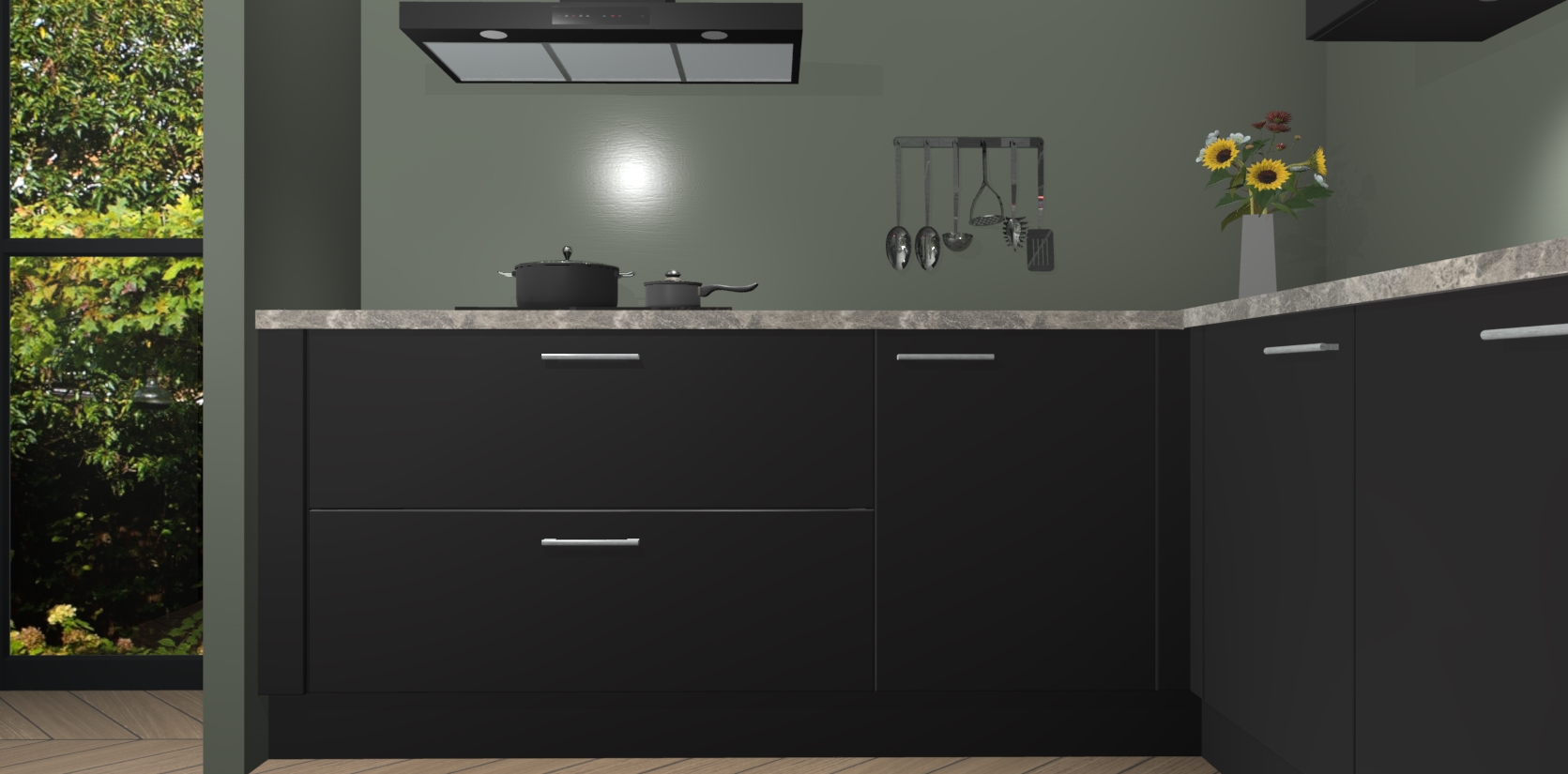 Dit is de perfecte keuken voor wie op zoek is naar een luxueuze stijl zonder zijn portemonnee te legen! Het chique ontwerp van Zwarte keuken Gotenburg voegt dat vleugje verfijning toe aan elk huis.