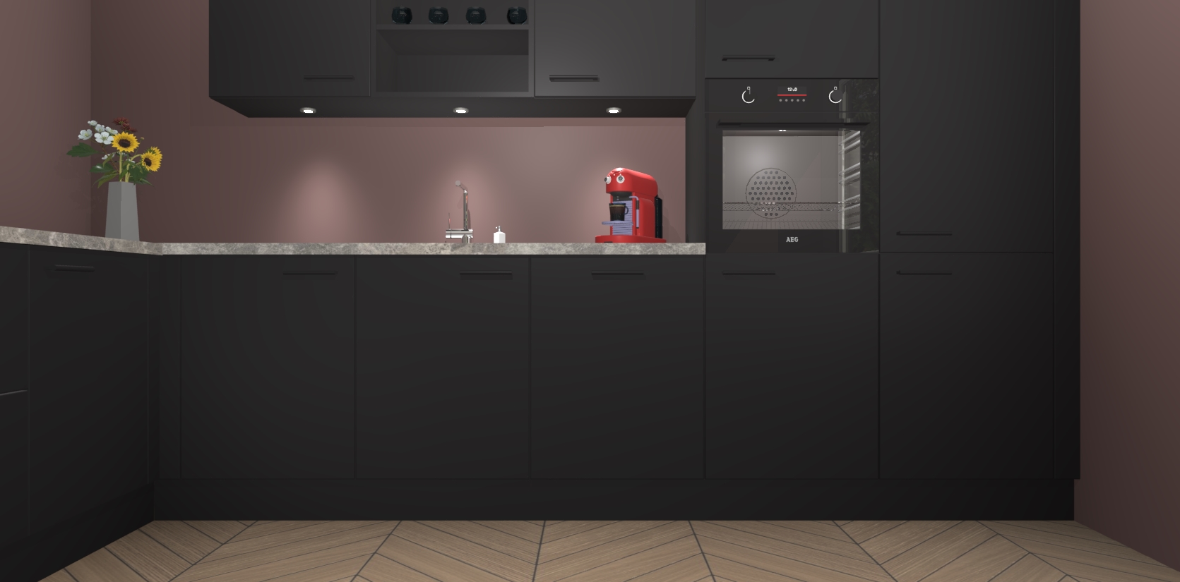 Inclusief plinten, stelpoten en werkblad