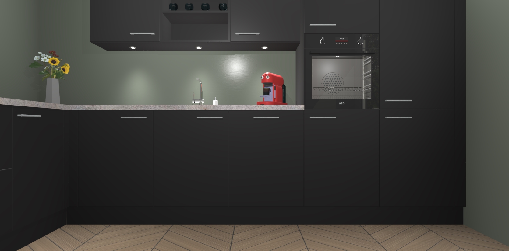 Inclusief plinten, stelpoten en werkblad