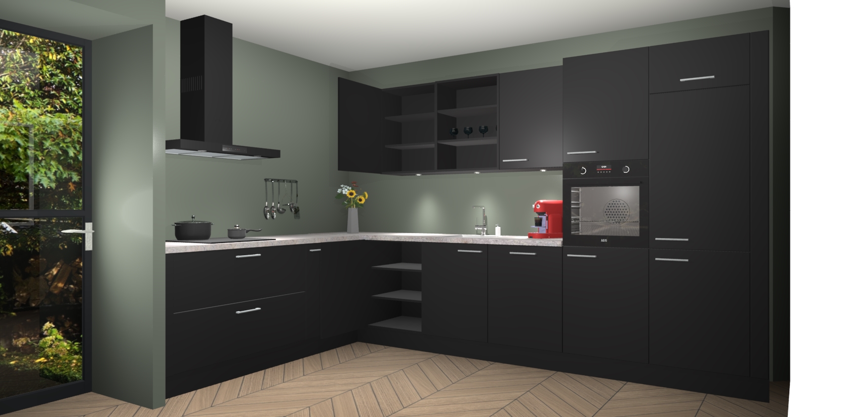 Welkom bij de Zwarte Keuken Gotenburg - waar luxe en chic wonen nog nooit zo betaalbaar is geweest! Deze strakke hoekkeuken is perfect voor elk huishouden en biedt een indrukwekkende hoeveelheid opbergruimte voor al uw behoeften. Bovendien zijn de kasten in de fabriek voor gemonteerd, zodat u binnen mum van tijd kunt genieten van uw langverwachte keukendromen.