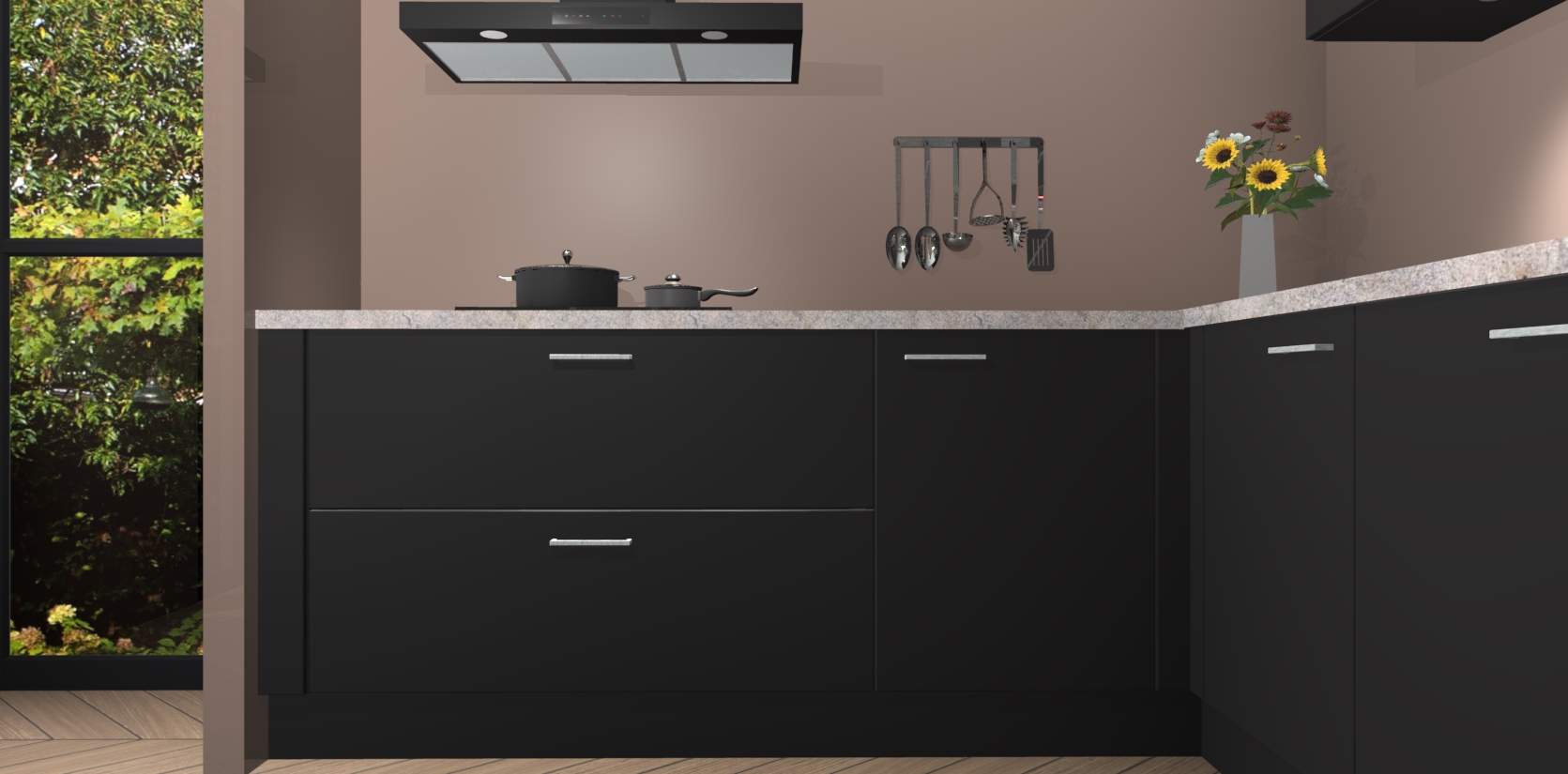 Dit is de perfecte keuken voor wie op zoek is naar een luxueuze stijl zonder zijn portemonnee te legen! Het chique ontwerp van Zwarte keuken Gotenburg voegt dat vleugje verfijning toe aan elk huis.