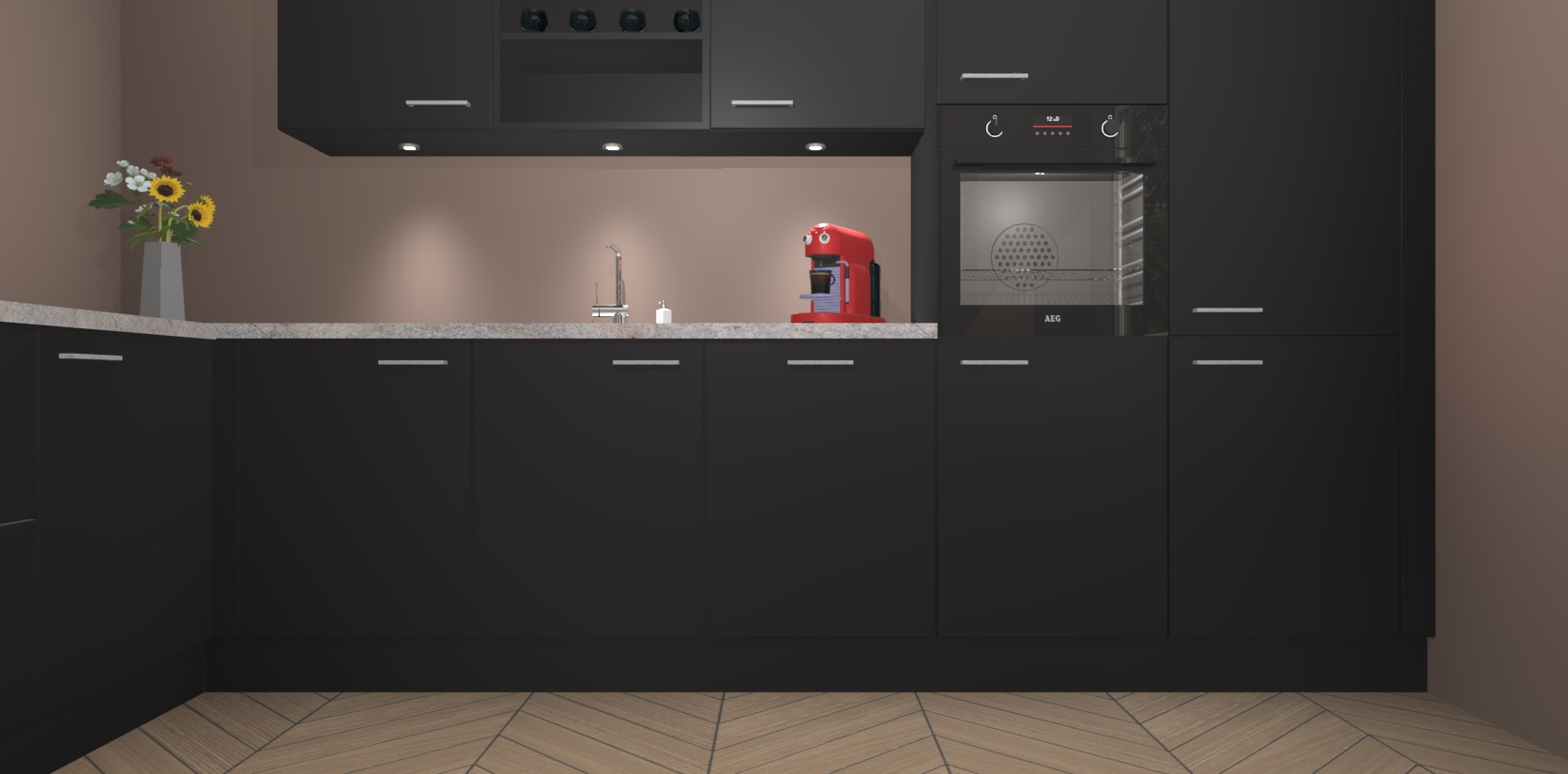In deze box zijn alle kleuren verzameld van de deuren en werkbladen. Vraag de gratis kleurenbox aan en kijk thuis rustig verder!