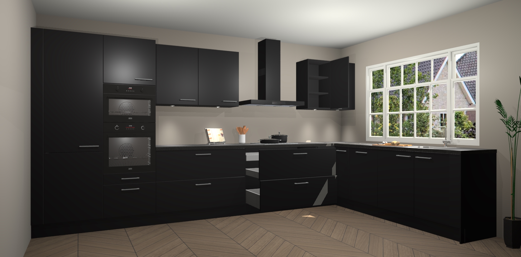 Heeft u nog apparatuur nodig? Geen probleem: de zwarte keuken Graz bevat vijf ingebouwde apparaten - een oven, inductiekookplaat, afzuigkap, vaatwasser en koelkast - die gemakkelijk kunnen worden bijgewerkt naar AEG na bestelling. En als dat nog niet genoeg is; onze kasten worden pre-geassembleerd geleverd en zijn verkrijgbaar tegen een vastgeroeste lage prijs! U hoeft nooit meer te zoeken naar goede kwaliteit en service want onze producten hebben echt Duitse kwaliteit.