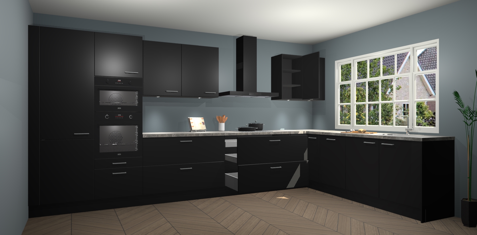 Heeft u nog apparatuur nodig? Geen probleem: de zwarte keuken Graz bevat vijf ingebouwde apparaten - een oven, inductiekookplaat, afzuigkap, vaatwasser en koelkast - die gemakkelijk kunnen worden bijgewerkt naar AEG na bestelling. En als dat nog niet genoeg is; onze kasten worden pre-geassembleerd geleverd en zijn verkrijgbaar tegen een vastgeroeste lage prijs! U hoeft nooit meer te zoeken naar goede kwaliteit en service want onze producten hebben echt Duitse kwaliteit.