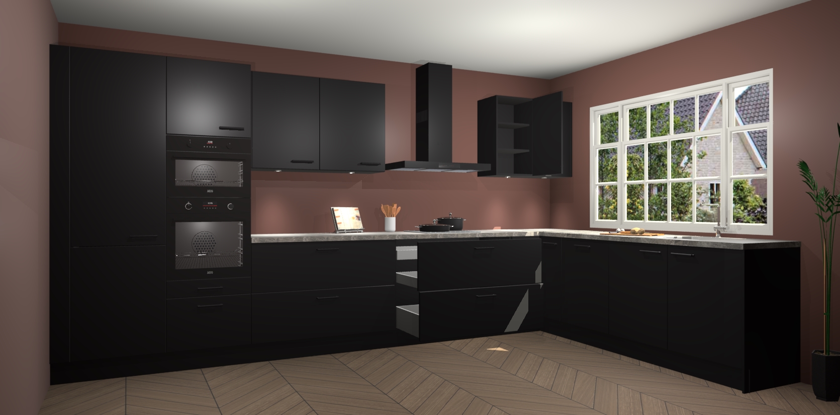 Kom dichtbij de perfecte keuken van uw dromen met de zwarte keuken Graz. Met een prachtige houtlook en eigentijds ontwerp, straalt deze keuken warmte en sfeer uit. Of u nu liefhebber bent van traditionele of moderne stijlen, er is genoeg ruimte om aan al uw behoeften te voldoen.
