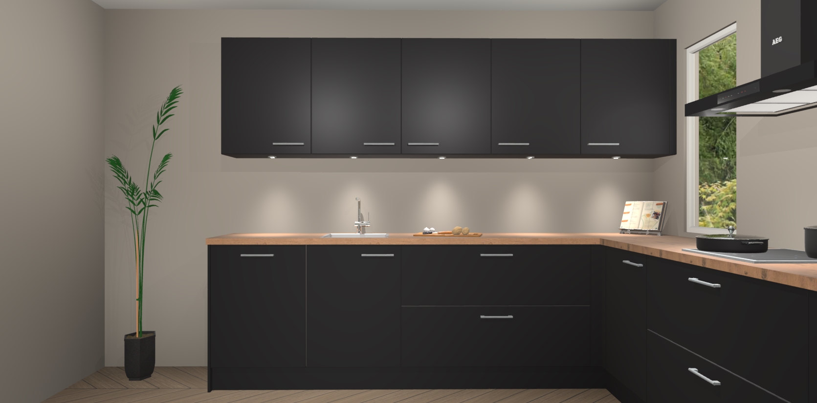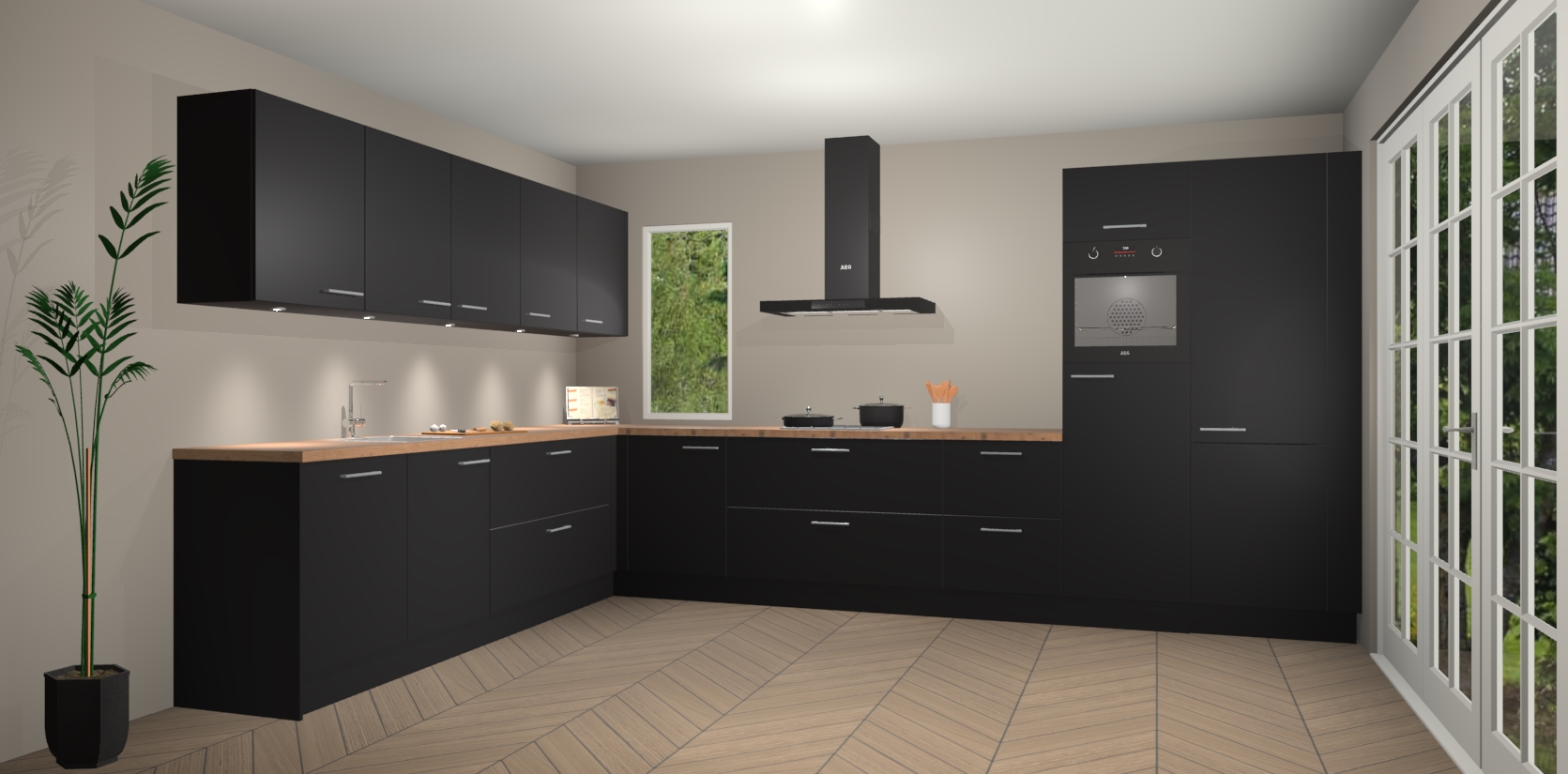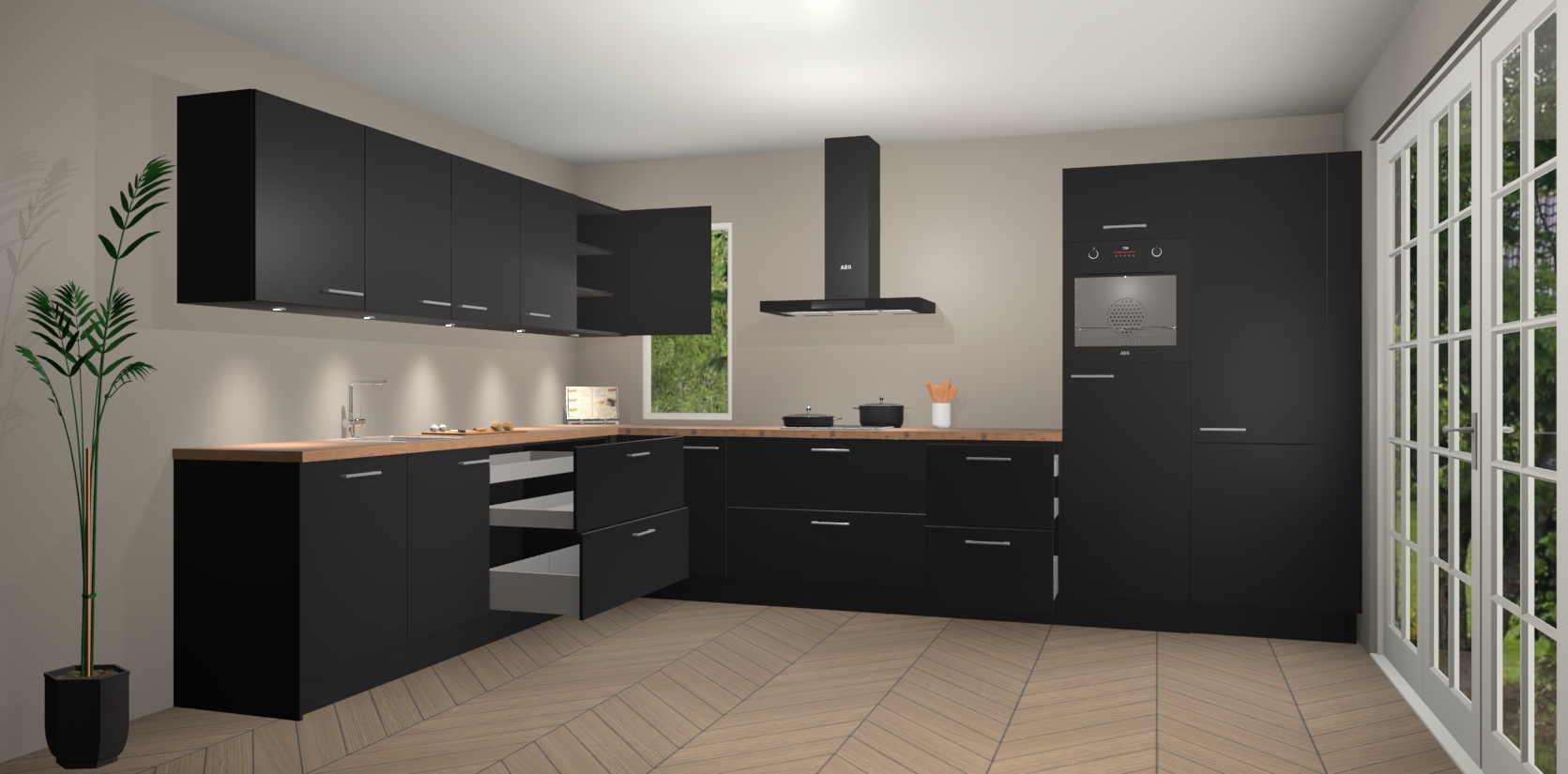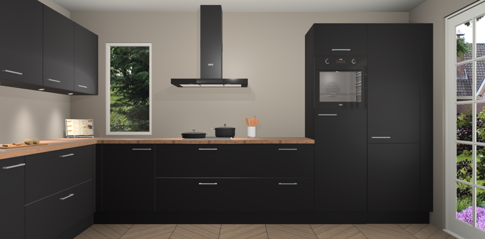 Heeft u nog apparatuur nodig? Geen probleem: de Zwarte keuken Harare bevat vijf ingebouwde apparaten - een oven, inductiekookplaat, afzuigkap, vaatwasser en koelkast - die gemakkelijk kunnen worden bijgewerkt naar AEG na bestelling. En als dat nog niet genoeg is; onze kasten worden pre-geassembleerd geleverd en zijn verkrijgbaar tegen een vastgeroeste lage prijs! U hoeft nooit meer te zoeken naar goede kwaliteit en service want onze producten hebben echt Duitse kwaliteit.