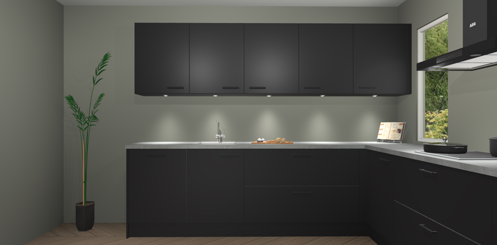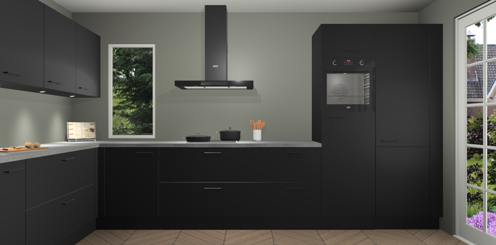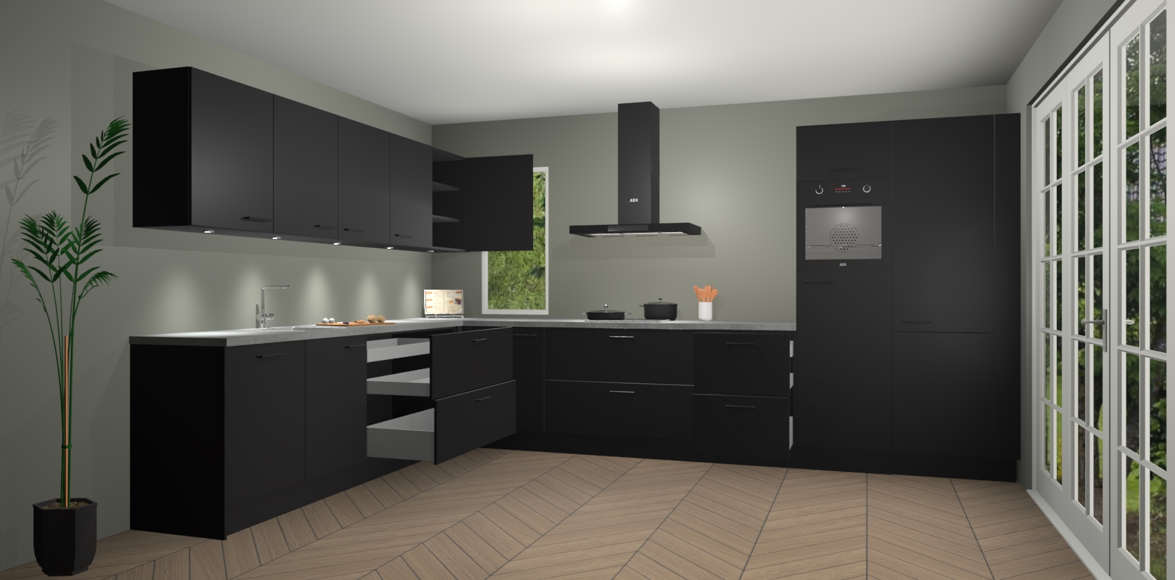 Heeft u nog apparatuur nodig? Geen probleem: de Zwarte keuken Harare bevat vijf ingebouwde apparaten - een oven, inductiekookplaat, afzuigkap, vaatwasser en koelkast - die gemakkelijk kunnen worden bijgewerkt naar AEG na bestelling. En als dat nog niet genoeg is; onze kasten worden pre-geassembleerd geleverd en zijn verkrijgbaar tegen een vastgeroeste lage prijs! U hoeft nooit meer te zoeken naar goede kwaliteit en service want onze producten hebben echt Duitse kwaliteit.
