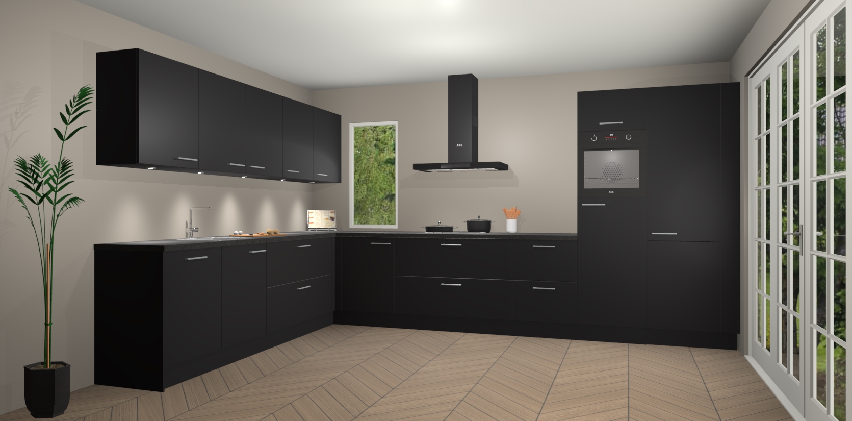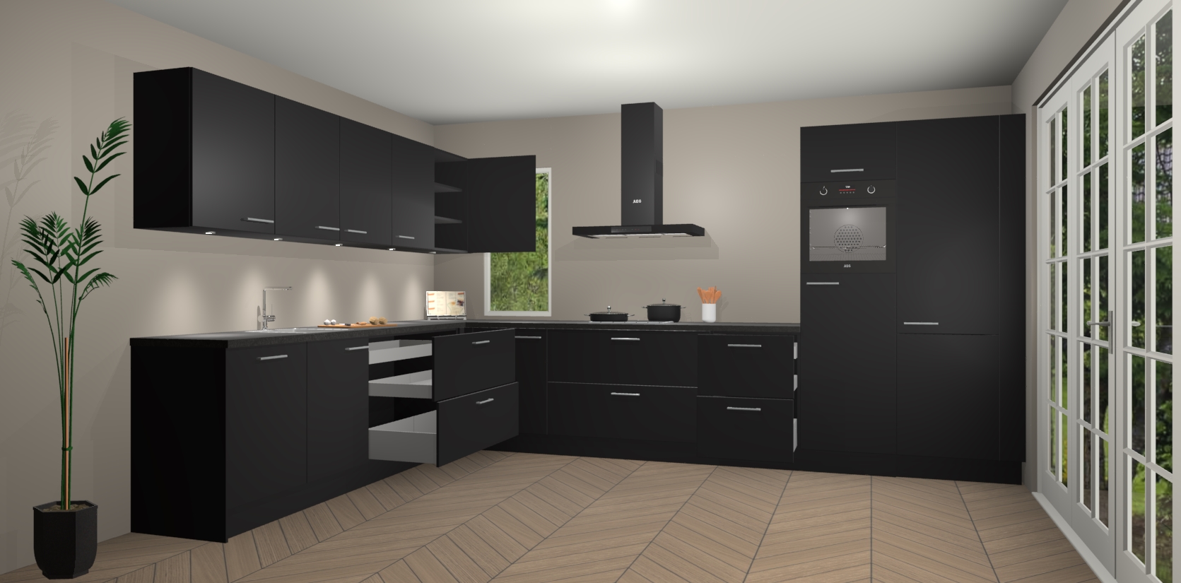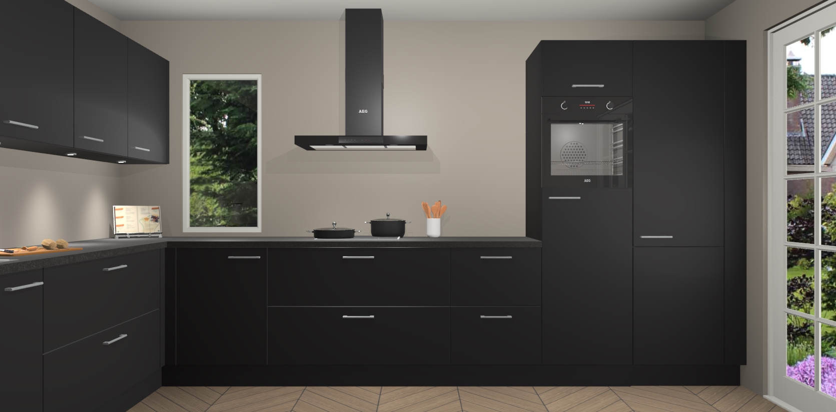 Heeft u nog apparatuur nodig? Geen probleem: de Zwarte keuken Harare bevat vijf ingebouwde apparaten - een oven, inductiekookplaat, afzuigkap, vaatwasser en koelkast - die gemakkelijk kunnen worden bijgewerkt naar AEG na bestelling. En als dat nog niet genoeg is; onze kasten worden pre-geassembleerd geleverd en zijn verkrijgbaar tegen een vastgeroeste lage prijs! U hoeft nooit meer te zoeken naar goede kwaliteit en service want onze producten hebben echt Duitse kwaliteit.