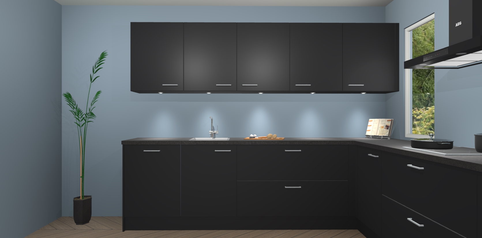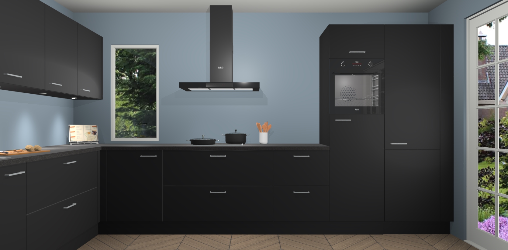 Heeft u nog apparatuur nodig? Geen probleem: de Zwarte keuken Harare bevat vijf ingebouwde apparaten - een oven, inductiekookplaat, afzuigkap, vaatwasser en koelkast - die gemakkelijk kunnen worden bijgewerkt naar AEG na bestelling. En als dat nog niet genoeg is; onze kasten worden pre-geassembleerd geleverd en zijn verkrijgbaar tegen een vastgeroeste lage prijs! U hoeft nooit meer te zoeken naar goede kwaliteit en service want onze producten hebben echt Duitse kwaliteit.