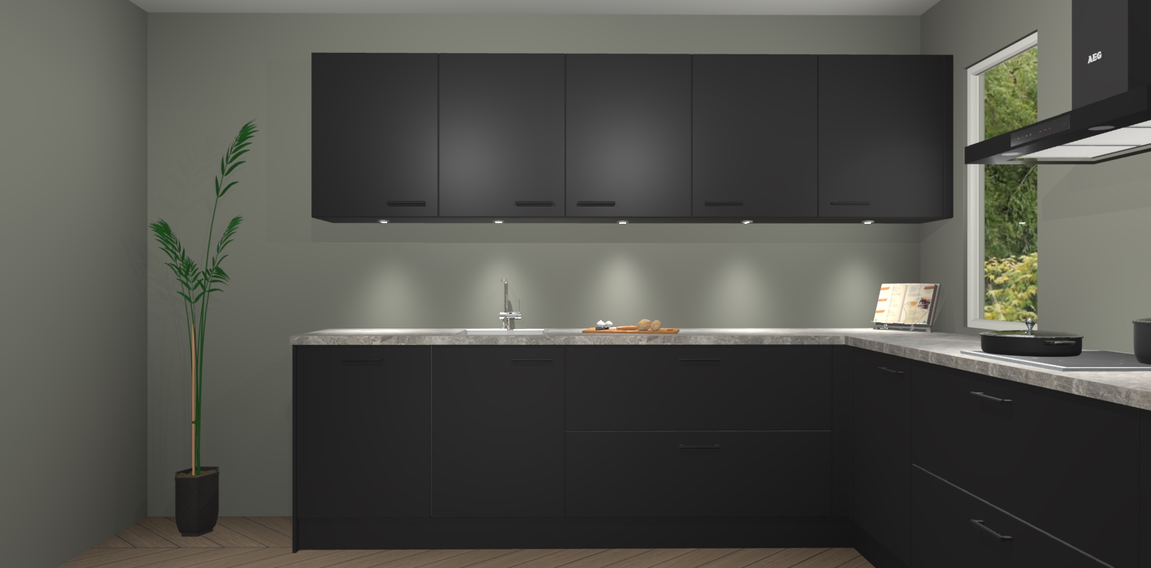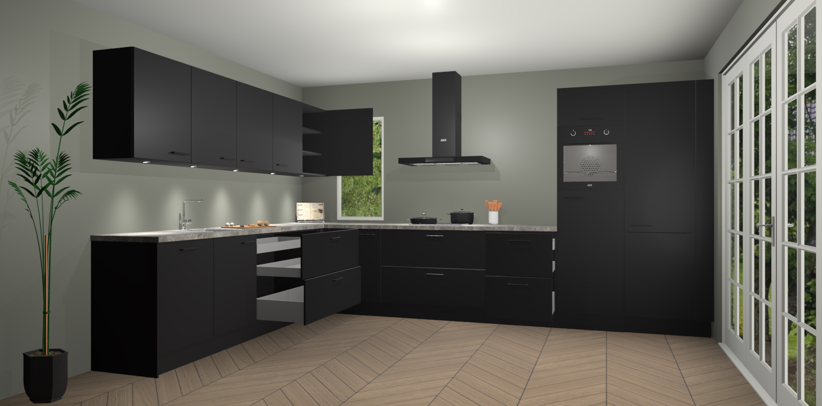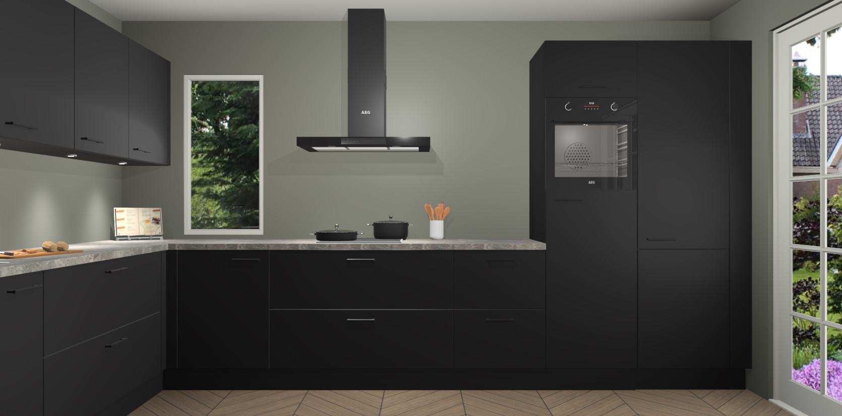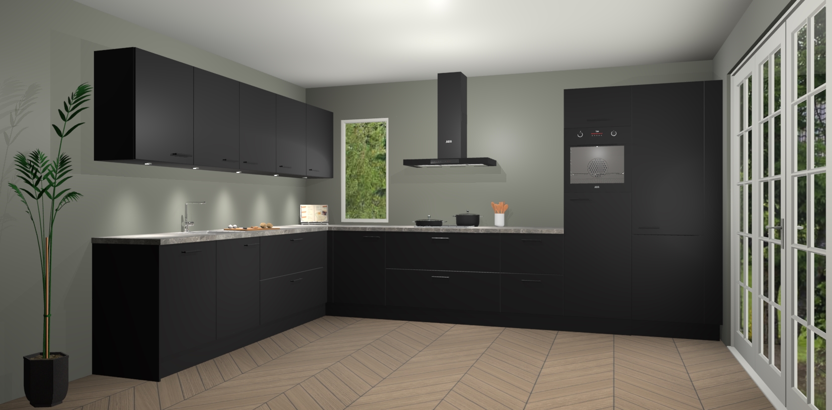 Heeft u nog apparatuur nodig? Geen probleem: de Zwarte keuken Harare bevat vijf ingebouwde apparaten - een oven, inductiekookplaat, afzuigkap, vaatwasser en koelkast - die gemakkelijk kunnen worden bijgewerkt naar AEG na bestelling. En als dat nog niet genoeg is; onze kasten worden pre-geassembleerd geleverd en zijn verkrijgbaar tegen een vastgeroeste lage prijs! U hoeft nooit meer te zoeken naar goede kwaliteit en service want onze producten hebben echt Duitse kwaliteit.