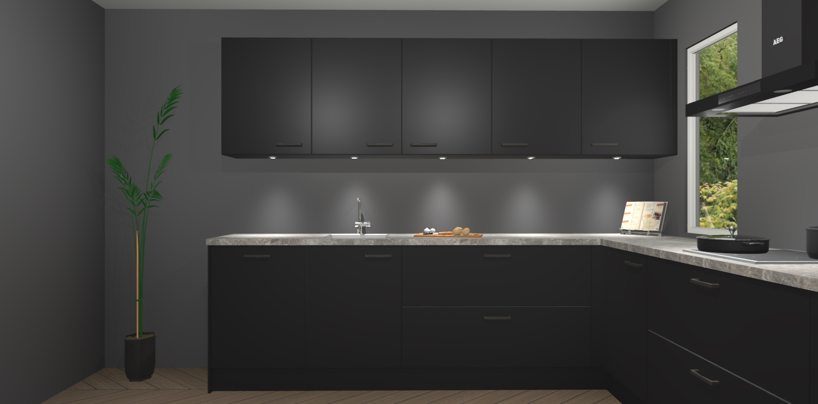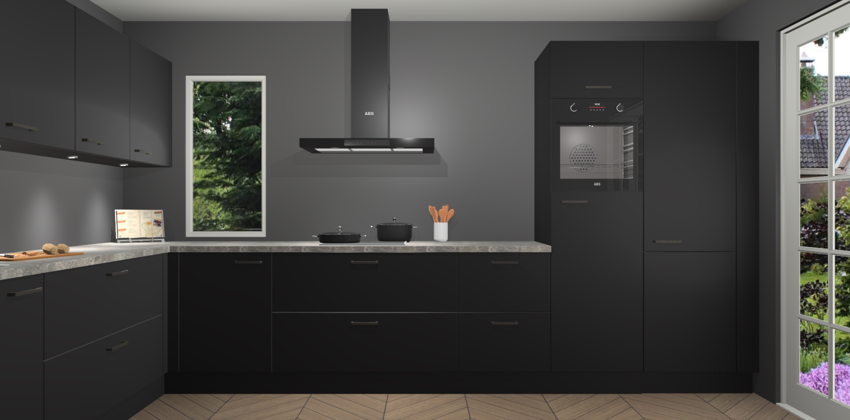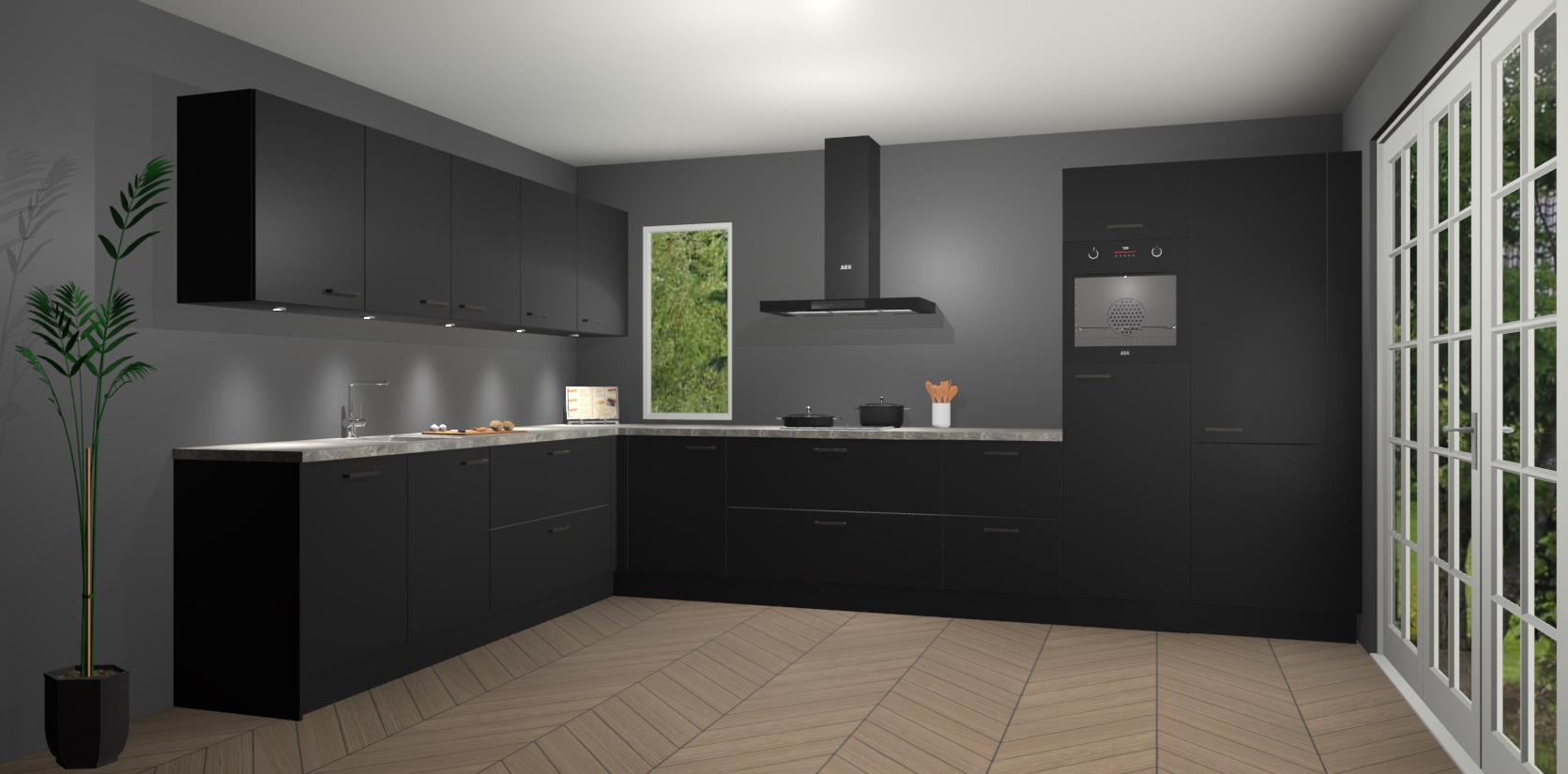 Heeft u nog apparatuur nodig? Geen probleem: de Zwarte keuken Harare bevat vijf ingebouwde apparaten - een oven, inductiekookplaat, afzuigkap, vaatwasser en koelkast - die gemakkelijk kunnen worden bijgewerkt naar AEG na bestelling. En als dat nog niet genoeg is; onze kasten worden pre-geassembleerd geleverd en zijn verkrijgbaar tegen een vastgeroeste lage prijs! U hoeft nooit meer te zoeken naar goede kwaliteit en service want onze producten hebben echt Duitse kwaliteit.