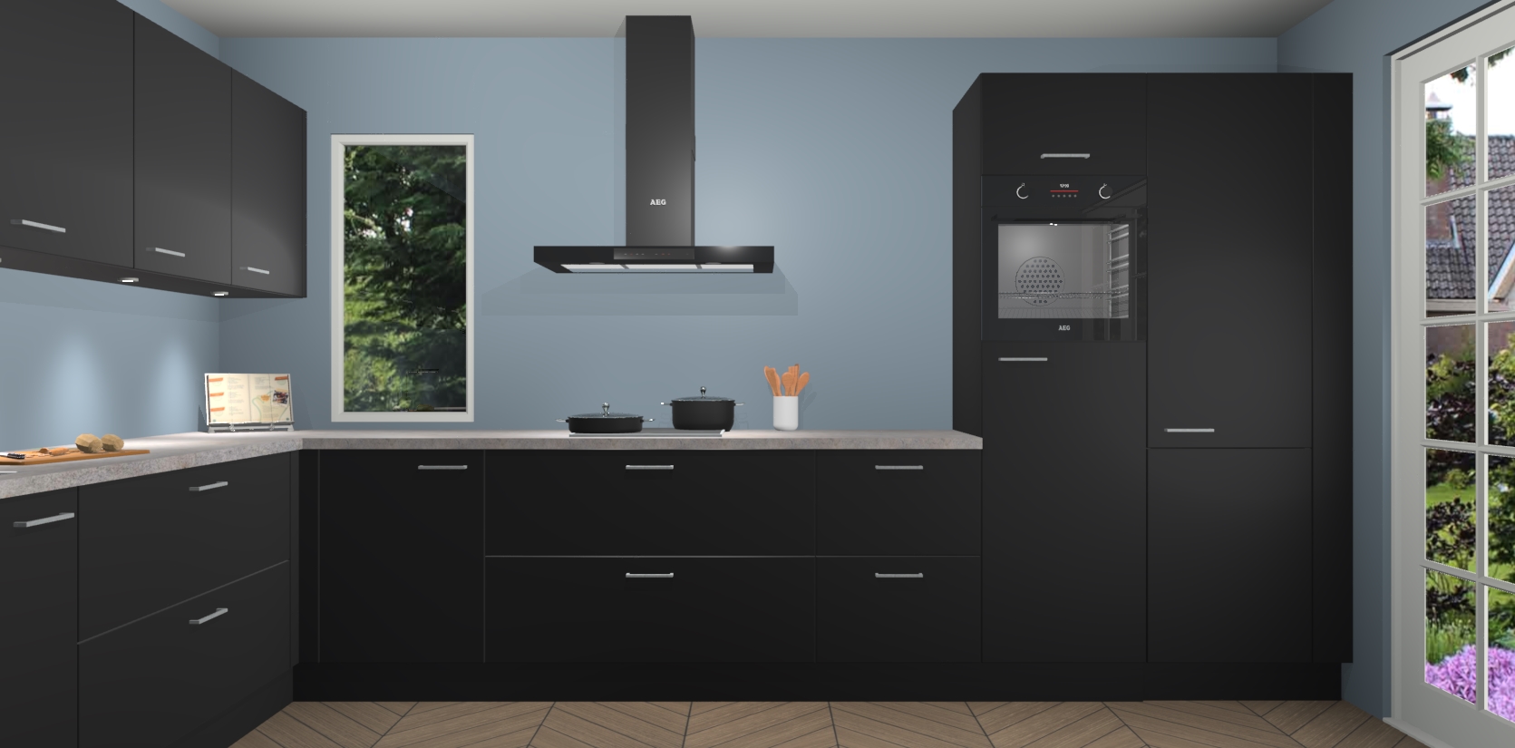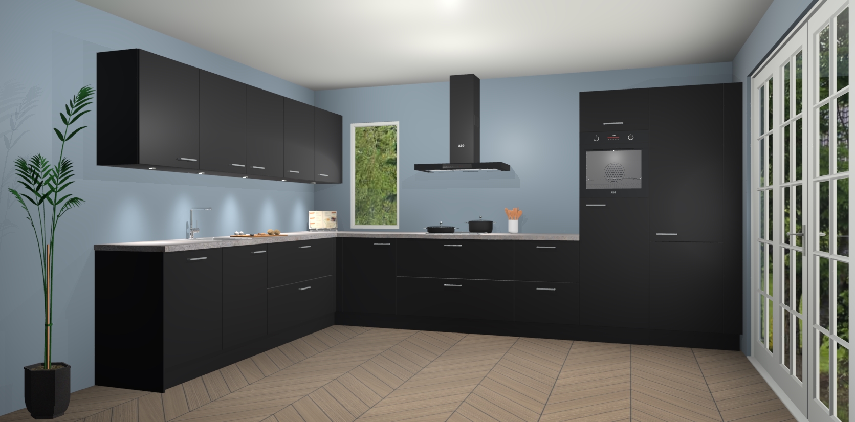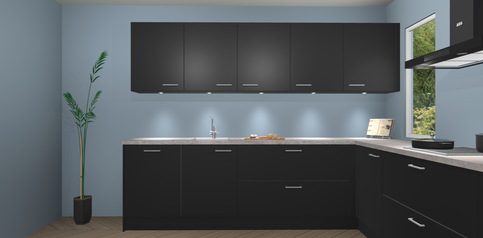 Heeft u nog apparatuur nodig? Geen probleem: de Zwarte keuken Harare bevat vijf ingebouwde apparaten - een oven, inductiekookplaat, afzuigkap, vaatwasser en koelkast - die gemakkelijk kunnen worden bijgewerkt naar AEG na bestelling. En als dat nog niet genoeg is; onze kasten worden pre-geassembleerd geleverd en zijn verkrijgbaar tegen een vastgeroeste lage prijs! U hoeft nooit meer te zoeken naar goede kwaliteit en service want onze producten hebben echt Duitse kwaliteit.