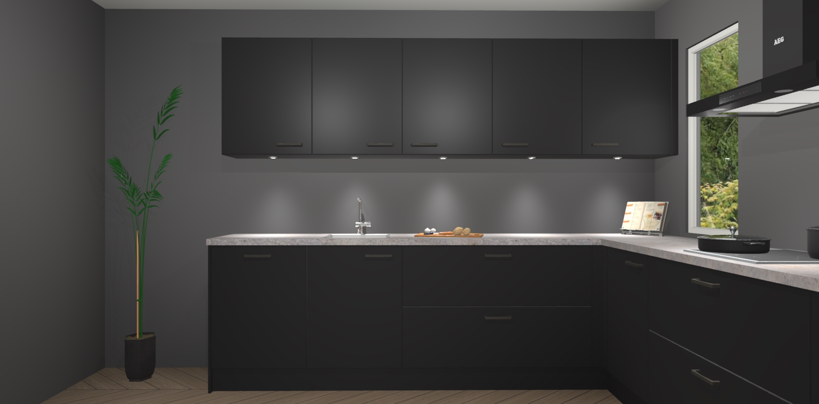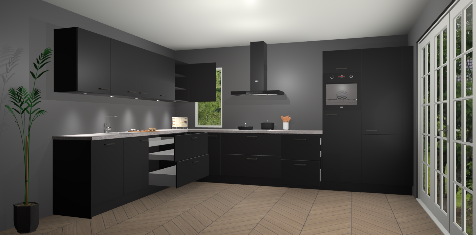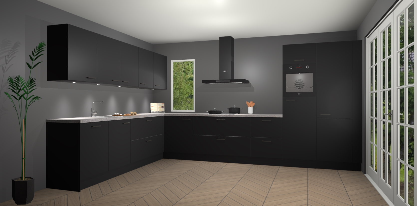Heeft u nog apparatuur nodig? Geen probleem: de Zwarte keuken Harare bevat vijf ingebouwde apparaten - een oven, inductiekookplaat, afzuigkap, vaatwasser en koelkast - die gemakkelijk kunnen worden bijgewerkt naar AEG na bestelling. En als dat nog niet genoeg is; onze kasten worden pre-geassembleerd geleverd en zijn verkrijgbaar tegen een vastgeroeste lage prijs! U hoeft nooit meer te zoeken naar goede kwaliteit en service want onze producten hebben echt Duitse kwaliteit.