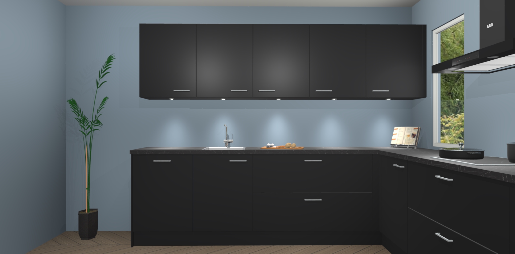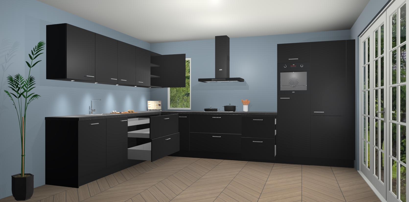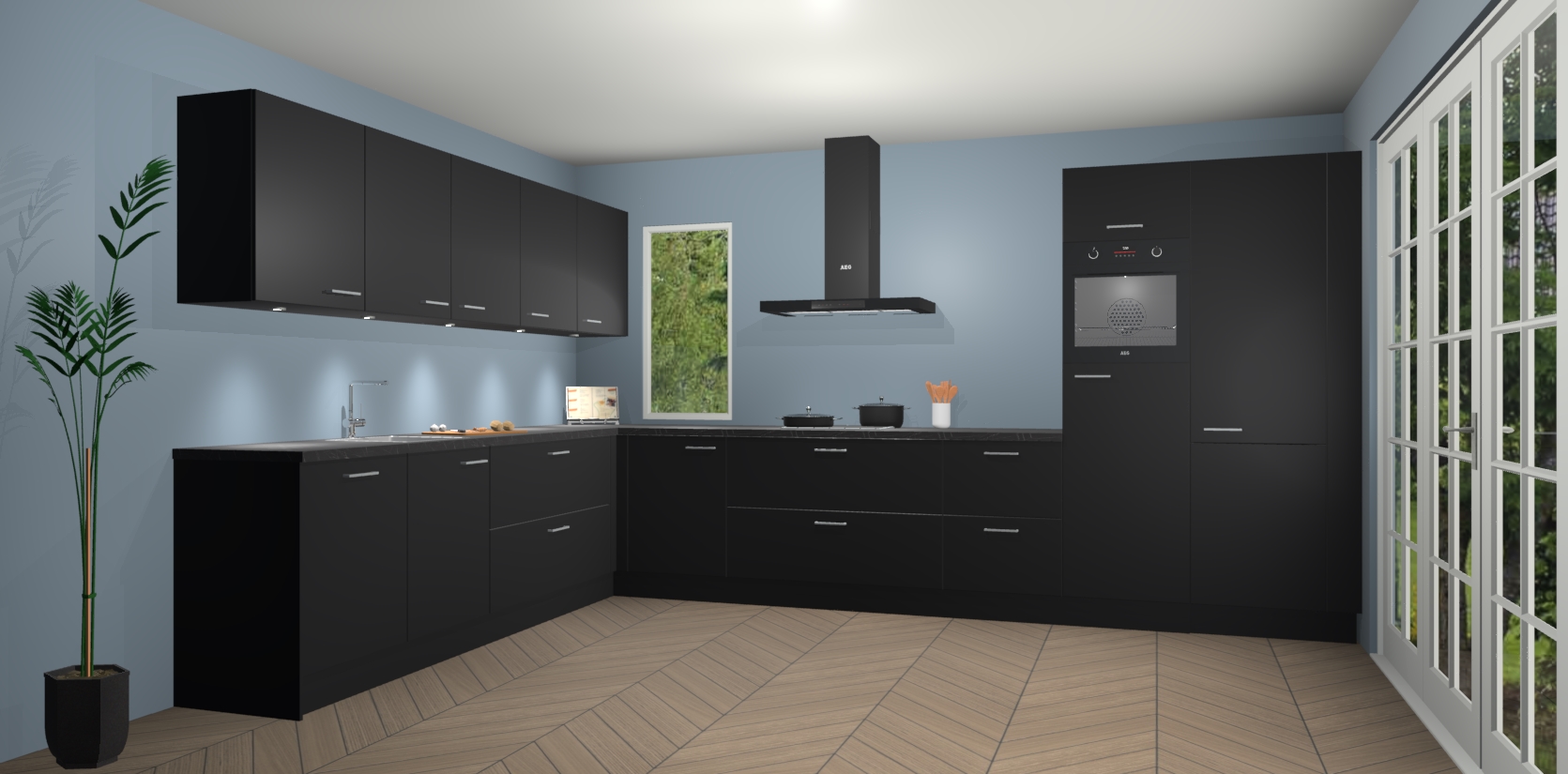 Heeft u nog apparatuur nodig? Geen probleem: de Zwarte keuken Harare bevat vijf ingebouwde apparaten - een oven, inductiekookplaat, afzuigkap, vaatwasser en koelkast - die gemakkelijk kunnen worden bijgewerkt naar AEG na bestelling. En als dat nog niet genoeg is; onze kasten worden pre-geassembleerd geleverd en zijn verkrijgbaar tegen een vastgeroeste lage prijs! U hoeft nooit meer te zoeken naar goede kwaliteit en service want onze producten hebben echt Duitse kwaliteit.