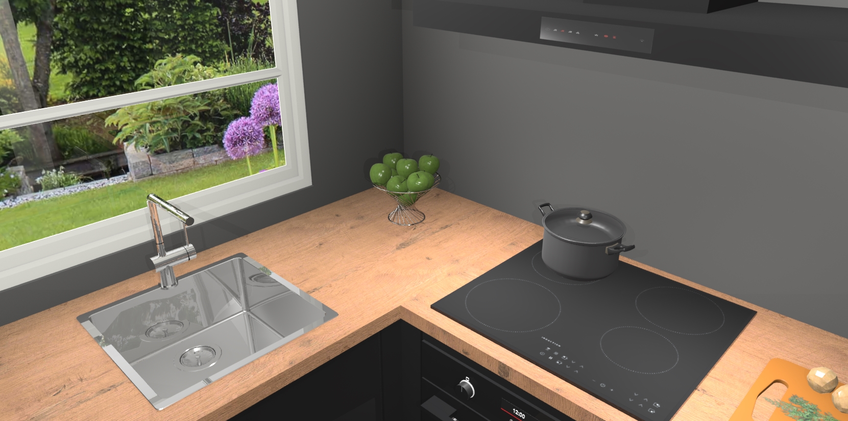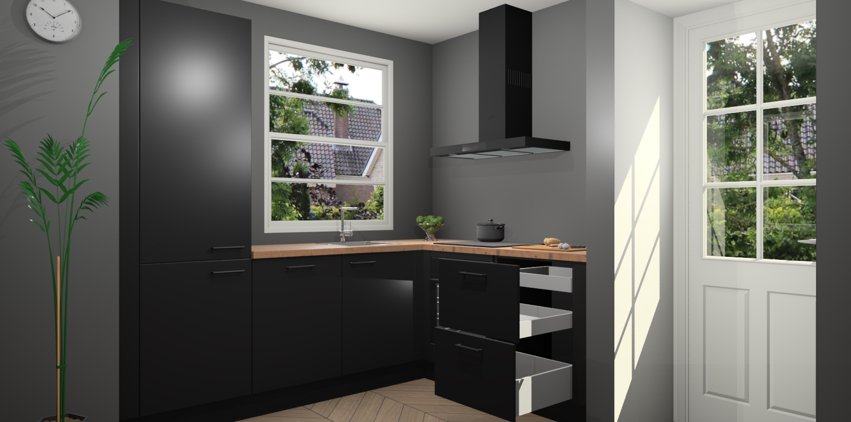 Wilt u een echte aanwinst voor uw keuken, maar bent u op zoek naar iets specialers dan de standaardkeukens? Kies dan voor de Zwarte keuken Harbin! Dit prachtige hoekkeukenontwerp geeft u alle ruimte om optimaal te genieten van heerlijk koken. Het uitmuntende afwerkingsniveau, de fraaie houtstructuur en de sfeervolle zwarte grepen maken van de Zwarte keuken Harbin de perfecte keuze voor zowel enthousiaste thuiskoks als design-minded interieurliefhebbers.