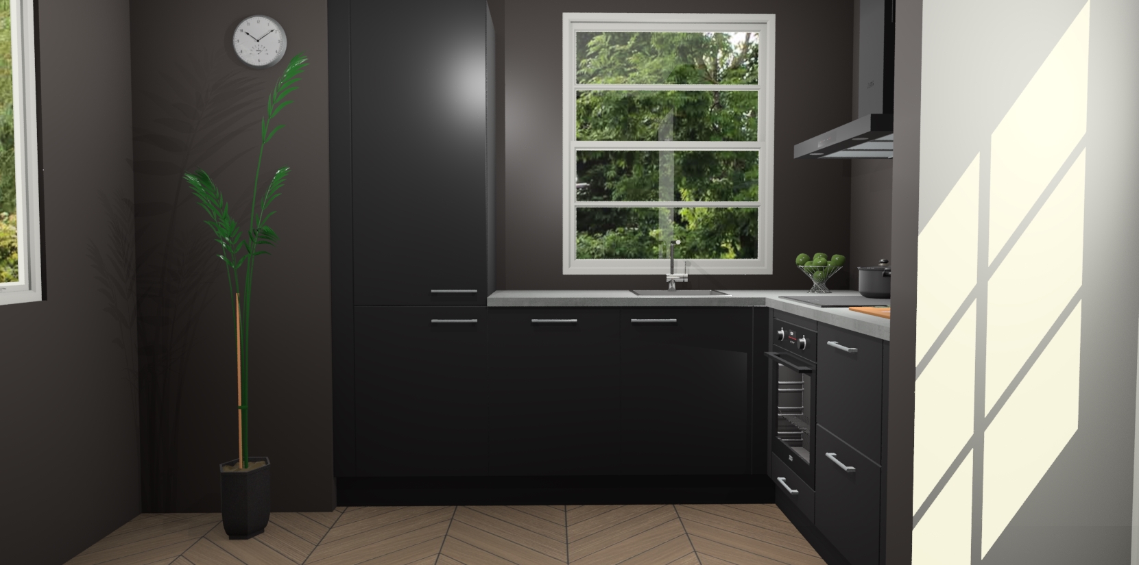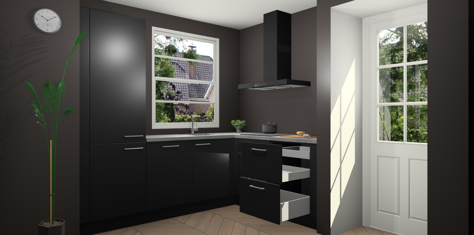 Wilt u een echte aanwinst voor uw keuken, maar bent u op zoek naar iets specialers dan de standaardkeukens? Kies dan voor de Zwarte keuken Harbin! Dit prachtige hoekkeukenontwerp geeft u alle ruimte om optimaal te genieten van heerlijk koken. Het uitmuntende afwerkingsniveau, de fraaie houtstructuur en de sfeervolle zwarte grepen maken van de Zwarte keuken Harbin de perfecte keuze voor zowel enthousiaste thuiskoks als design-minded interieurliefhebbers.
