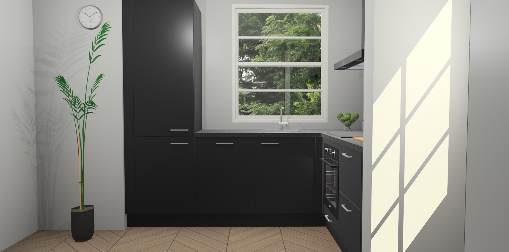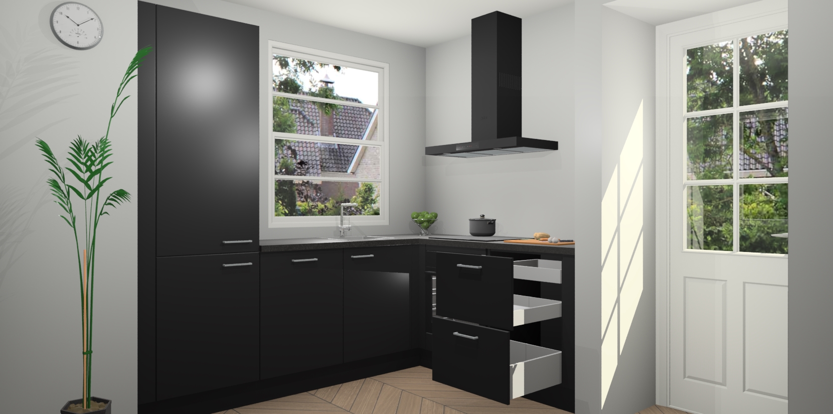 Plus: de Zwarte keuken Harbin is kant en klaar voorzien van 5 inbouwapparaten. U krijgt er direct bij: een oven, inductiekookplaat, afzuigkap, vaatwasser én koelkast. En als dat nog niet luxueus genoeg is, heeft u nog de mogelijkheid om de apparaten te upgraden naar AEG of om uw oven te vervangen door een combimagnetron. Ook fijn van voordeel zijn de softclosing-deuren die ervoor zorgen dat u geen geluid hoeft te maken wanneer u weer uw koelkastdeurtjes dichtdoet!