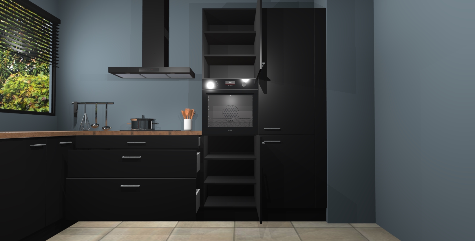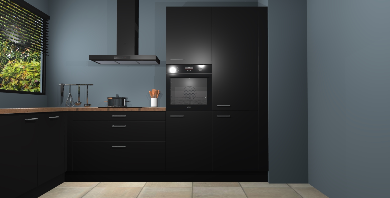 Met een modern, tijdloos design en ruime opslagruimte, zult u zich in no-time thuis voelen in uw nieuwe keuken. Uw leven wordt eenvoudiger met de soft-close deuren die voor het ultieme stille comfort zorgen - geen geluid dat u stoort terwijl u kookt. Ook is de keuken voorzien van 5 ingebouwde apparaten: een oven, inductie kookplaat, afzuigkap, vaatwasser en koelkast. Deze kunnen gemakkelijk na bestelling worden bijgewerkt naar AEG - waardoor uw luxe ervaring compleet is.