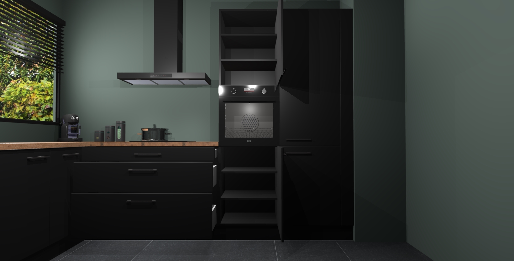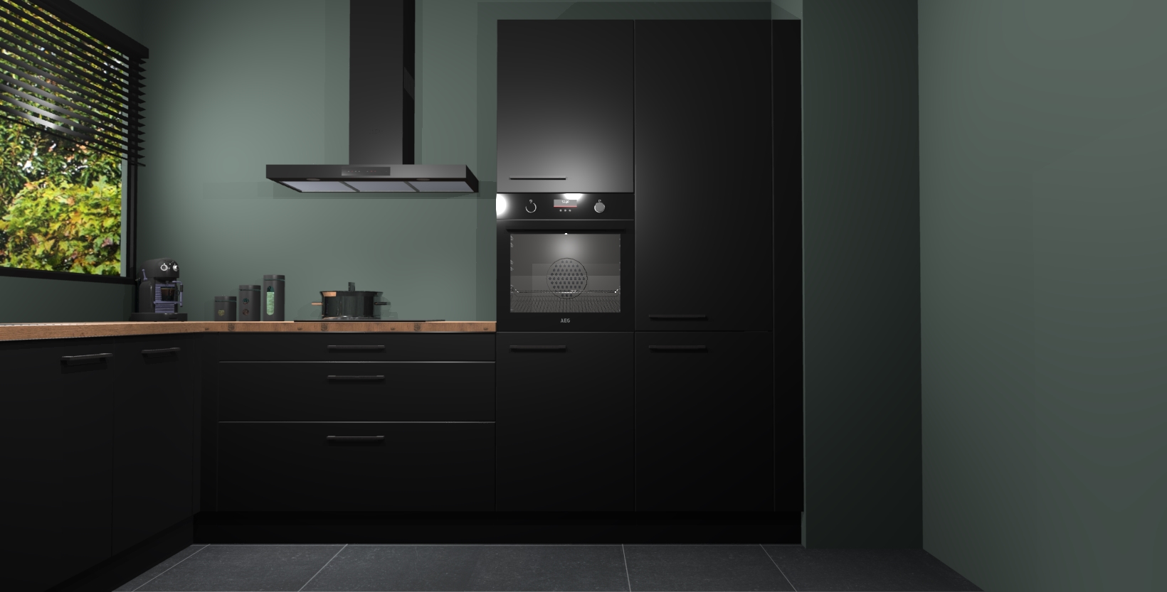 Met een modern, tijdloos design en ruime opslagruimte, zult u zich in no-time thuis voelen in uw nieuwe keuken. Uw leven wordt eenvoudiger met de soft-close deuren die voor het ultieme stille comfort zorgen - geen geluid dat u stoort terwijl u kookt. Ook is de keuken voorzien van 5 ingebouwde apparaten: een oven, inductie kookplaat, afzuigkap, vaatwasser en koelkast. Deze kunnen gemakkelijk na bestelling worden bijgewerkt naar AEG - waardoor uw luxe ervaring compleet is.